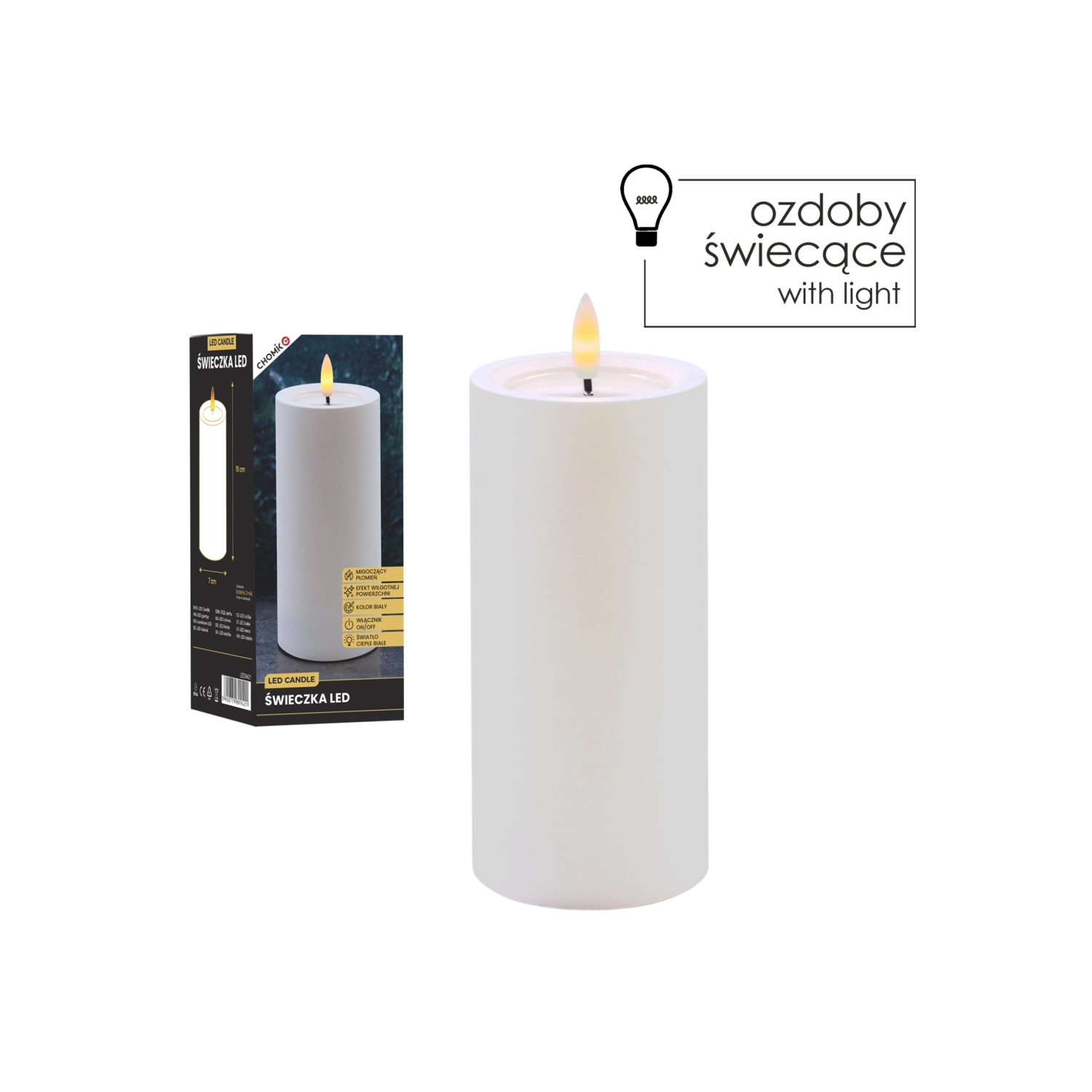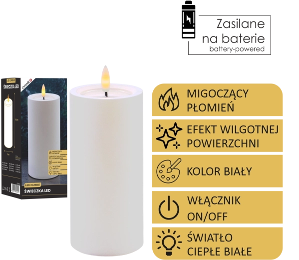 Táto biela LED sviečka je ideálna na vytvorenie útulnej atmosféry doma aj v komerčných priestoroch. Vďaka jemnému mihotaniu plameňa pôsobí autenticky, pritom je bezpečná a bez zápachu – vhodná do domácností s deťmi či domácimi miláčikmi.