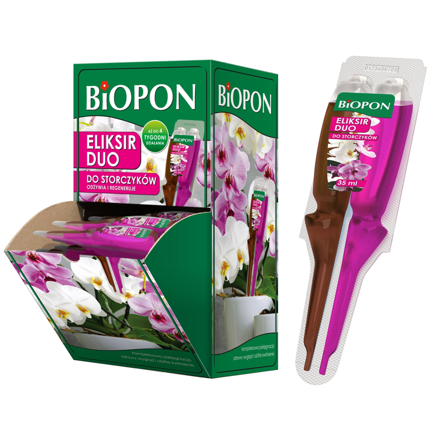 Biopon Elixír Duo spája ružovú výživnú zložku so základnými živinami pre bohaté kvitnutie a zdravý rast a hnedý regeneračný roztok, ktorý posilňuje korene, pomáha rastlinám lepšie zvládať stres z presadenia či nesprávnej starostlivosti a obnovuje ich prirodzenú rovnováhu. Vďaka oddeleným komorám zostávajú aktívne látky dlhšie účinné a miešajú sa až v substráte pre maximálne vstrebávanie.