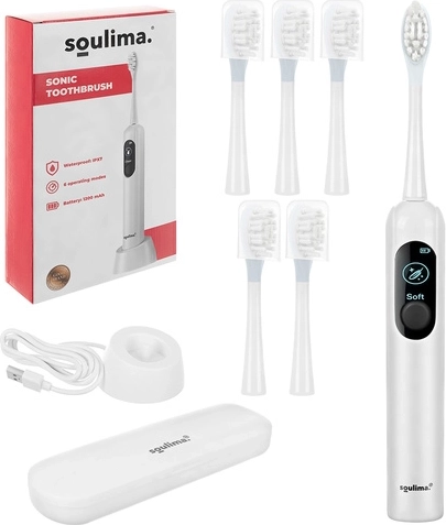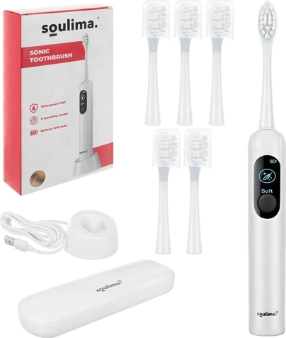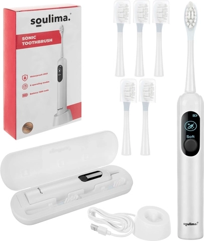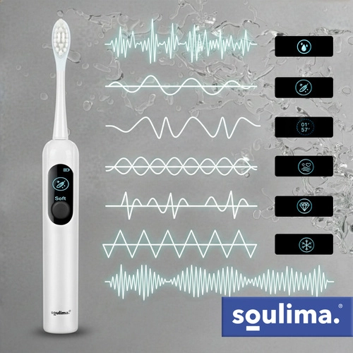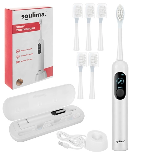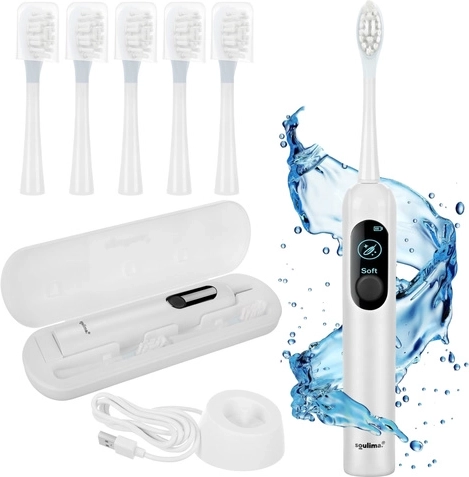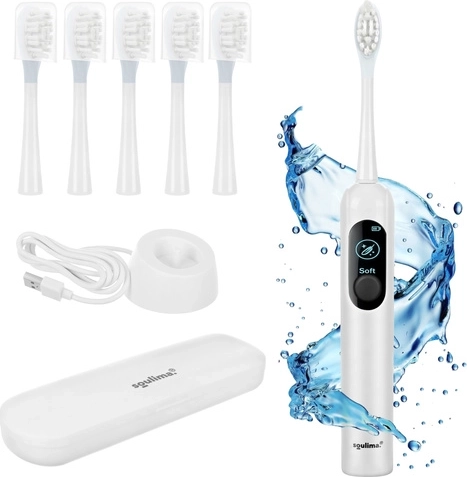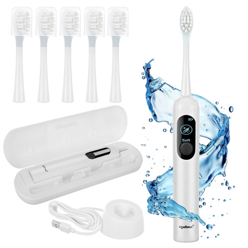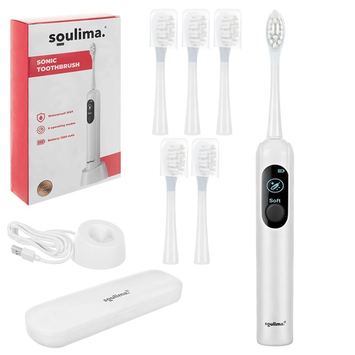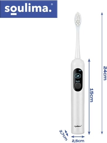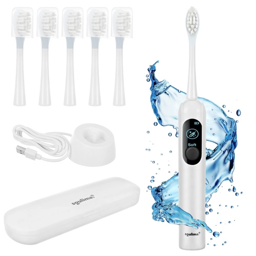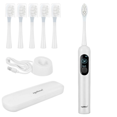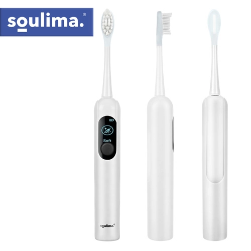 Sonický elektrický zubný kefka SOULIMA bielej farby s displejom