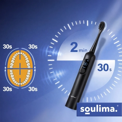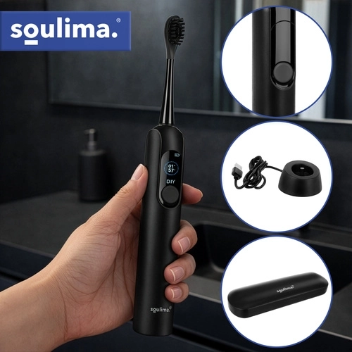 SOULIMA X800 je moderná sonická kefka na každodennú ústnu hygienu, ktorá čistí efektívnejšie a šetrnejšie než manuálna kefka. Vysokofrekvenčné vibrácie pomáhajú odstraňovať povlak a baktérie aj z ťažko dostupných miest, zatiaľ čo inteligentný časovač vás navedie na rovnomerné čistenie celej ústnej dutiny.
