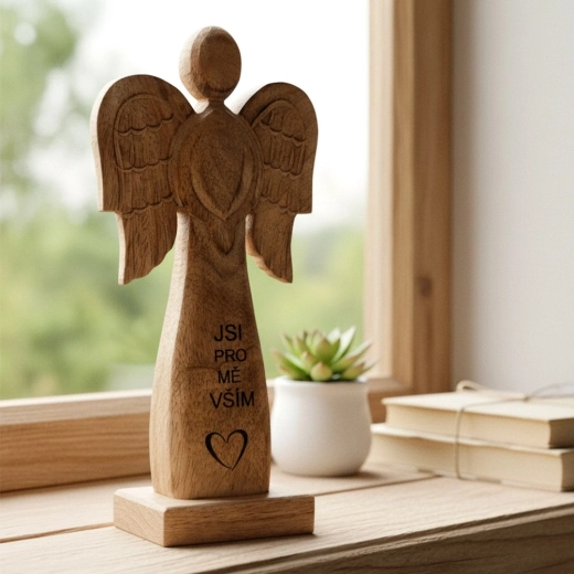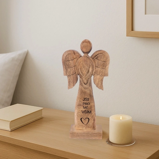 Anjel je univerzálnou dekoráciou – skvele sa hodí na policu, komodu či do vstupnej haly. V zimnom a sviatočnom období podčiarkne atmosféru domova, no vďaka nadčasovému dizajnu ho využijete po celý rok. Je to tiež originálny tip na darček k narodeninám, meninám, pri sťahovaní aj k duchovným príležitostiam.