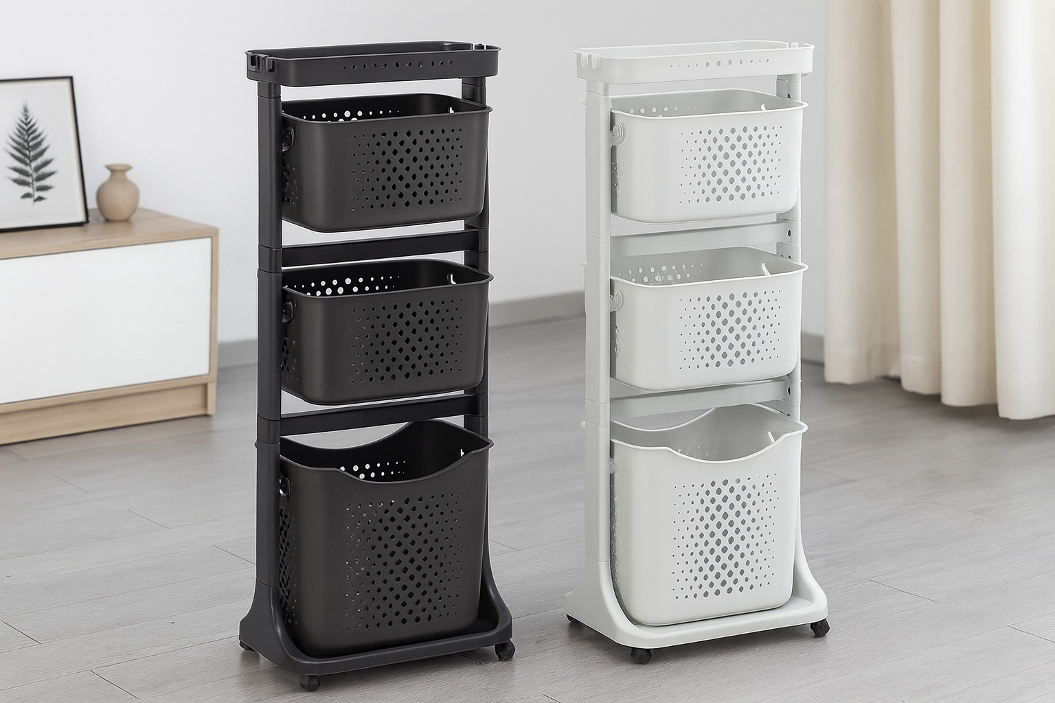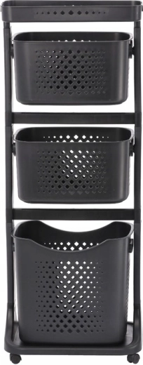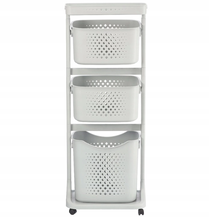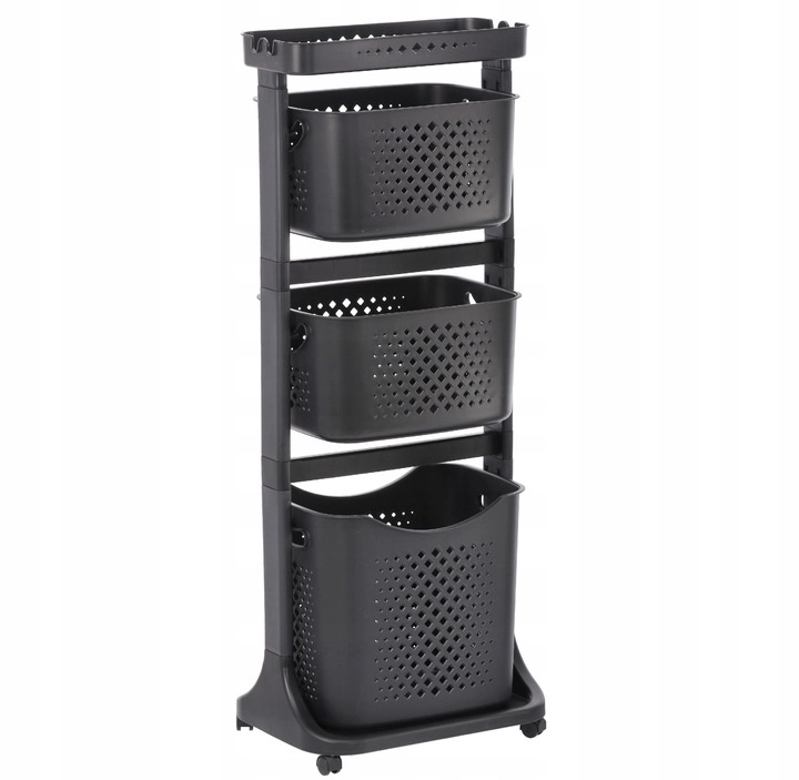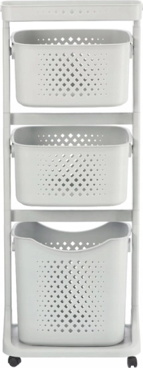 Udržte si poriadok s mobilným regálom, ktorý šetrí miesto a ponúkne maximum úložného priestoru. Štyri koše s perforáciou zabezpečujú cirkuláciu vzduchu a prehľad o obsahu, horná polica je ideálna na drobnosti po ruke. Vďaka kolieskam s hladkým pojazdom regál ľahko presuniete tam, kde je práve potrebný.