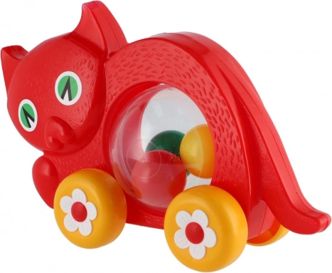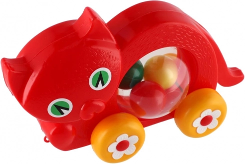 Ťahacia mačička s pohyblivými loptičkami pre najmenších. Odolný plast, rozmer 27×16×10 cm, vhodné od 12 mesiacov. Zábava a rozvoj motoriky pri prvých krôčikoch.