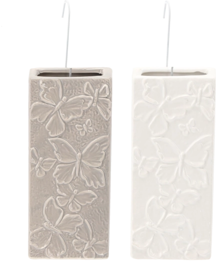 Dekoratívne keramické zvlhčovače na radiátor s reliéfom motýľov prirodzene zvyšujú vlhkosť v interiéri bez elektriny a hluku. V balení je 6 kusov v mixe farieb, každý s kovovým háčikom na zavesenie a plniacim otvorom zhora. Štýlové prevedenie v bielej a béžovej variante dodá domovu elegantný vzhľad a pomôže proti suchému vzduchu počas vykurovacej sezóny.