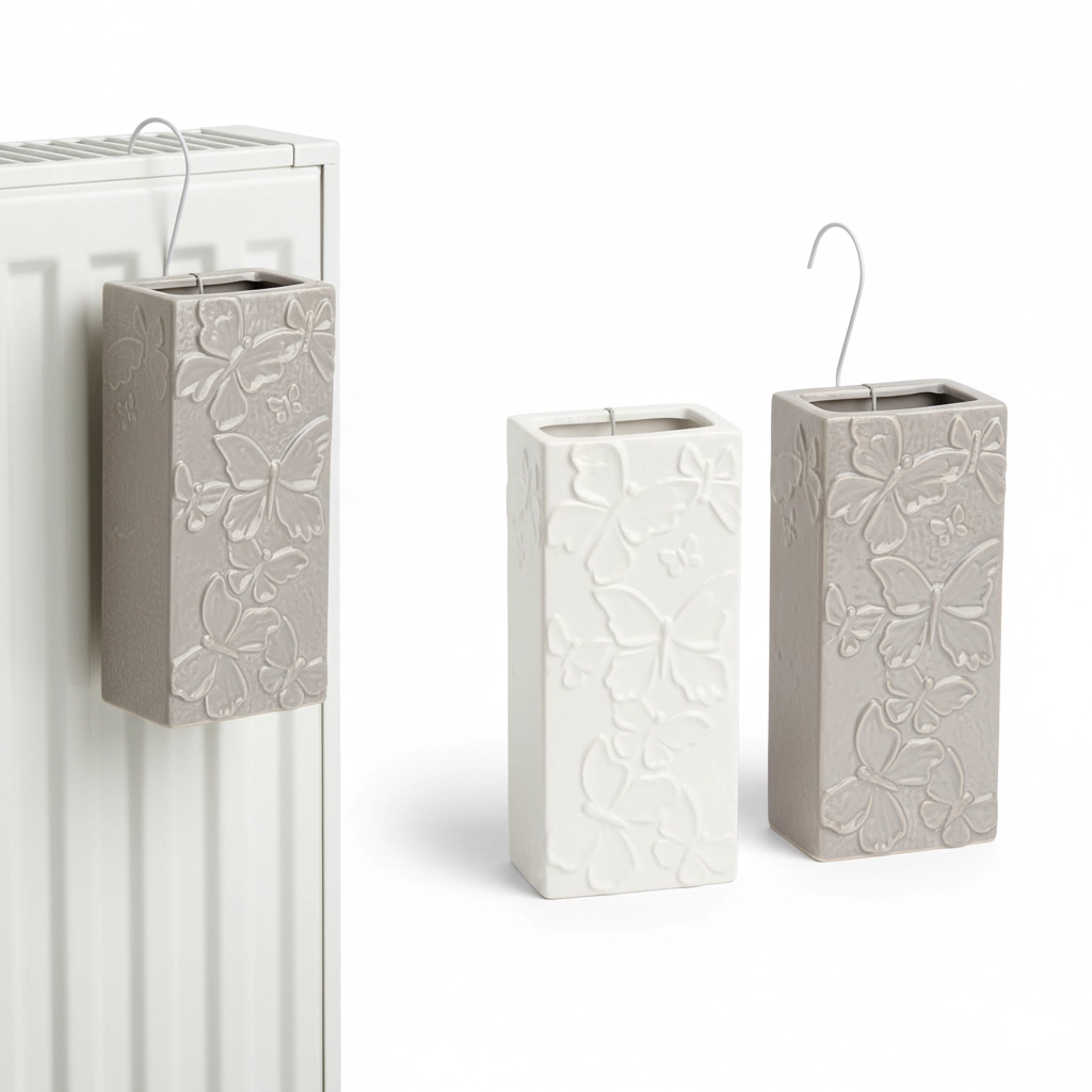Vytvorte si doma príjemnú klímu s keramickými zvlhčovačmi na radiátor s jemným reliéfom motýľov. Stačí ich naplniť vodou a zavesiť na kúrenie – teplo zaistí pozvoľné odparovanie a prirodzené zvlhčenie vzduchu bez spotreby elektriny, filtrov či hluku. Set 6 kusov pokryje viac miestností v byte alebo dome.
