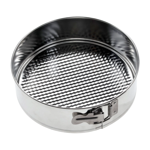 Táto kvalitná tortová forma je ideálna na prípravu tort, cheesecakeov aj koláčov. Vďaka odnímateľnému dnu a pevnej spone vyberiete upečený korpus hladko a bez popraskania. Štruktúrované (fakturované) dno znižuje priľnavosť cesta a uľahčuje údržbu.