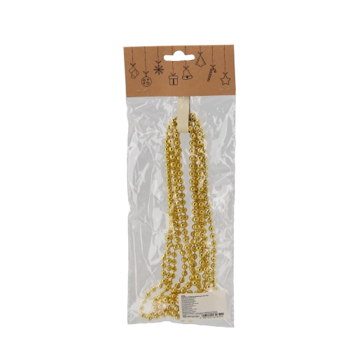Zlatá koráliková girlanda dodá dekoráciám teplý trbliet a elegantný nádych – ideálna k tradičným vianočným farbám a svetielkam.