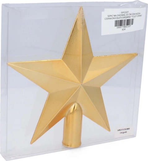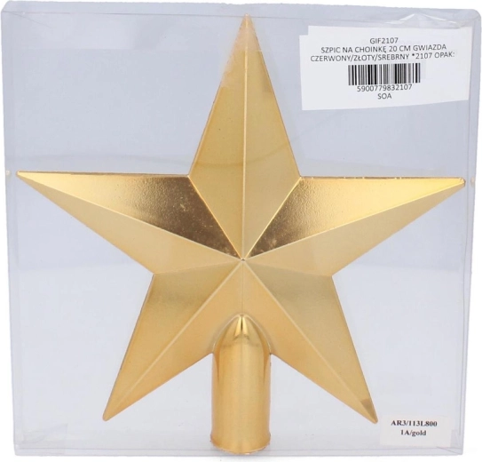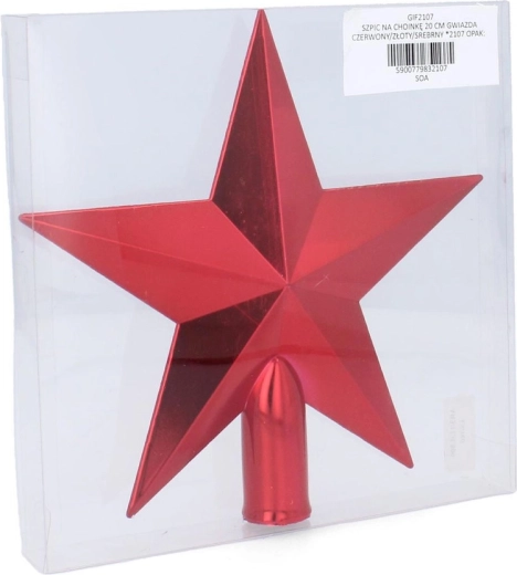 Elegantná špica na vianočný stromček v tvare hviezdy s výškou 20 cm dodá vášmu stromčeku slávnostný vzhľad. Vďaka modernému geometrickému dizajnu a farbám červená, zlatá a strieborná ju ľahko zladíte s ostatnými dekoráciami. Ľahká plastová konštrukcia zaisťuje jednoduchú inštaláciu a dlhú životnosť.