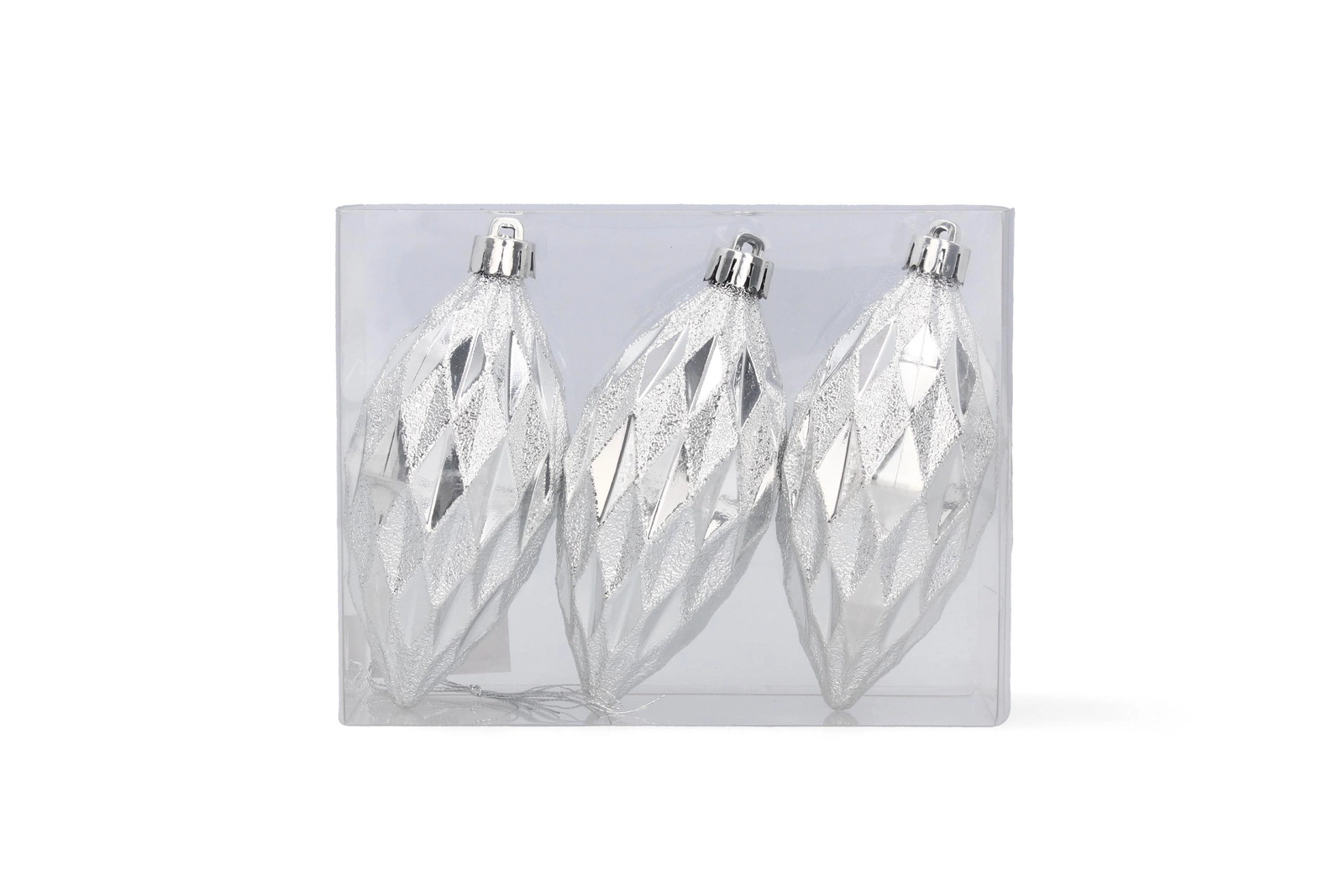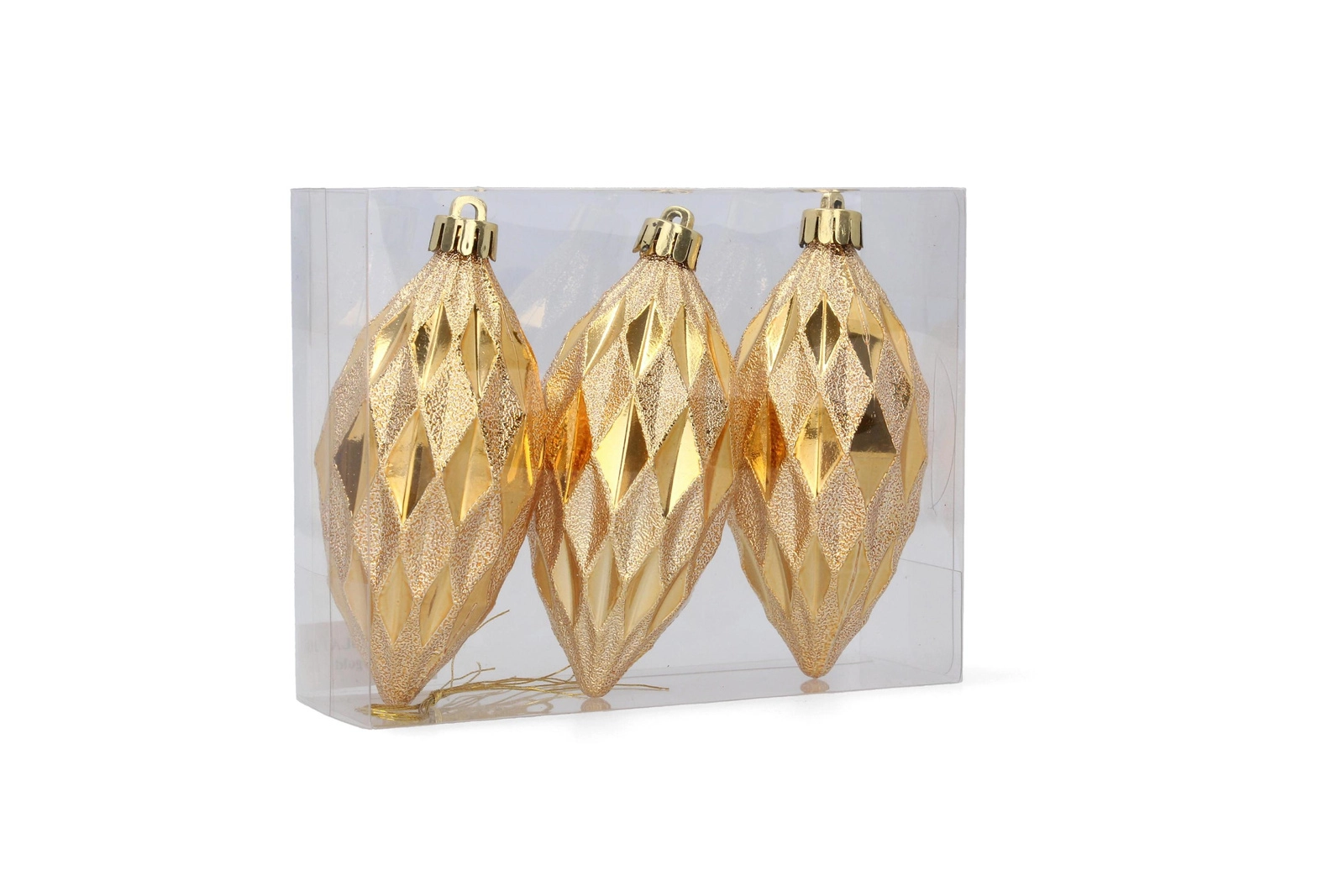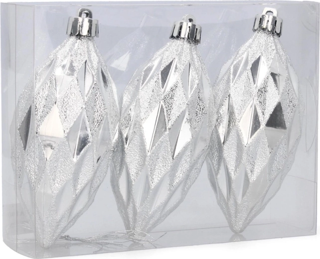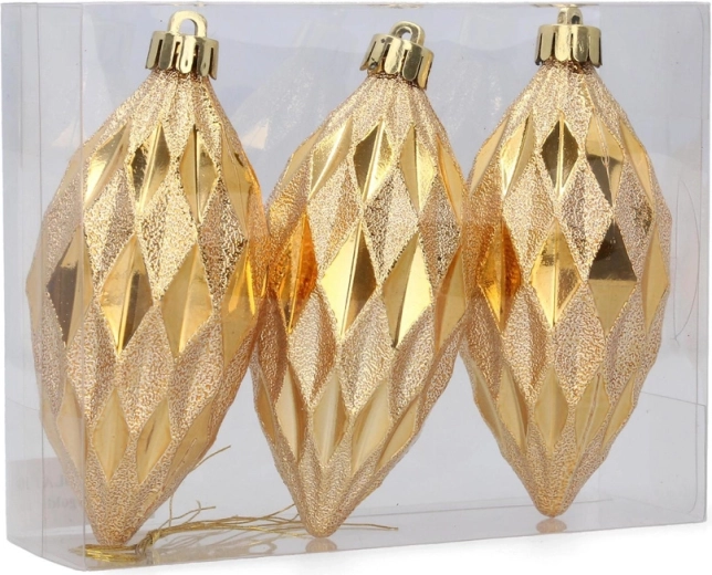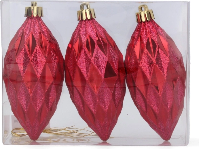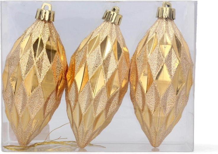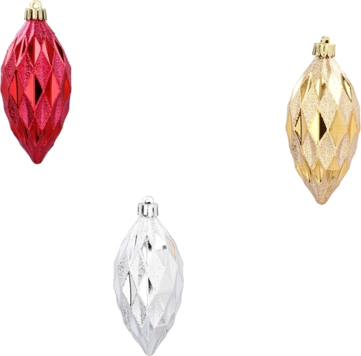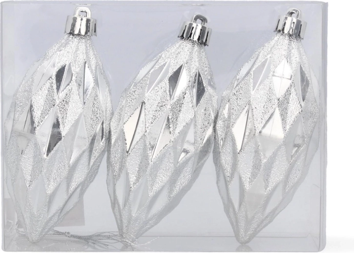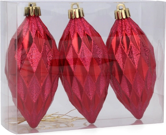Vytvorte si doma atmosféru tradičných Vianoc so sadou troch podlhovastých ozdôb v obľúbených farbách – červenej, zlatej a striebornej. Lesklý povrch dodá výzdobe jedinečný trbliet a zvýrazní svetelné odlesky na vašom vianočnom stromčeku.