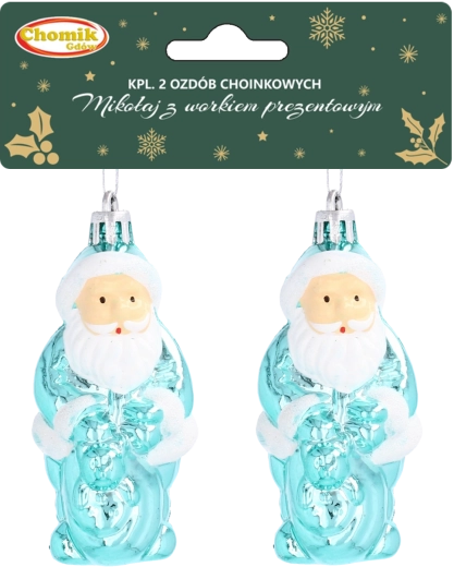 Elegantná sada dvoch vianočných ozdôb v podobe Mikuláša s vrecom darčekov dodá vášmu interiéru klasické čaro Vianoc. Vďaka kvalitnému plastu sú ozdoby bezpečné a odolné, pritom však ľahké pre jednoduché zavesenie na vetvičky či dekoratívne vence.