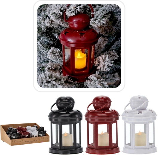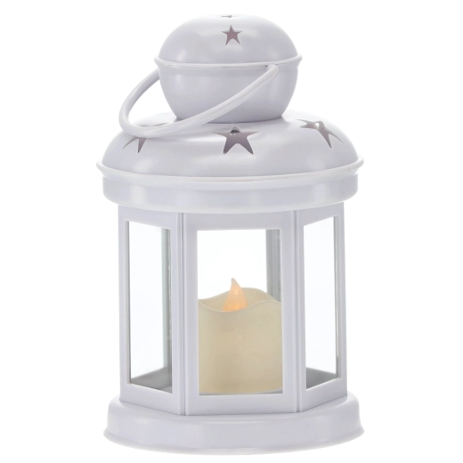 Napájanie na batérie a praktické držadlo umožnia postaviť či zavesiť lampáš na policu, stôl alebo parapet – bez hľadania zásuvky.
