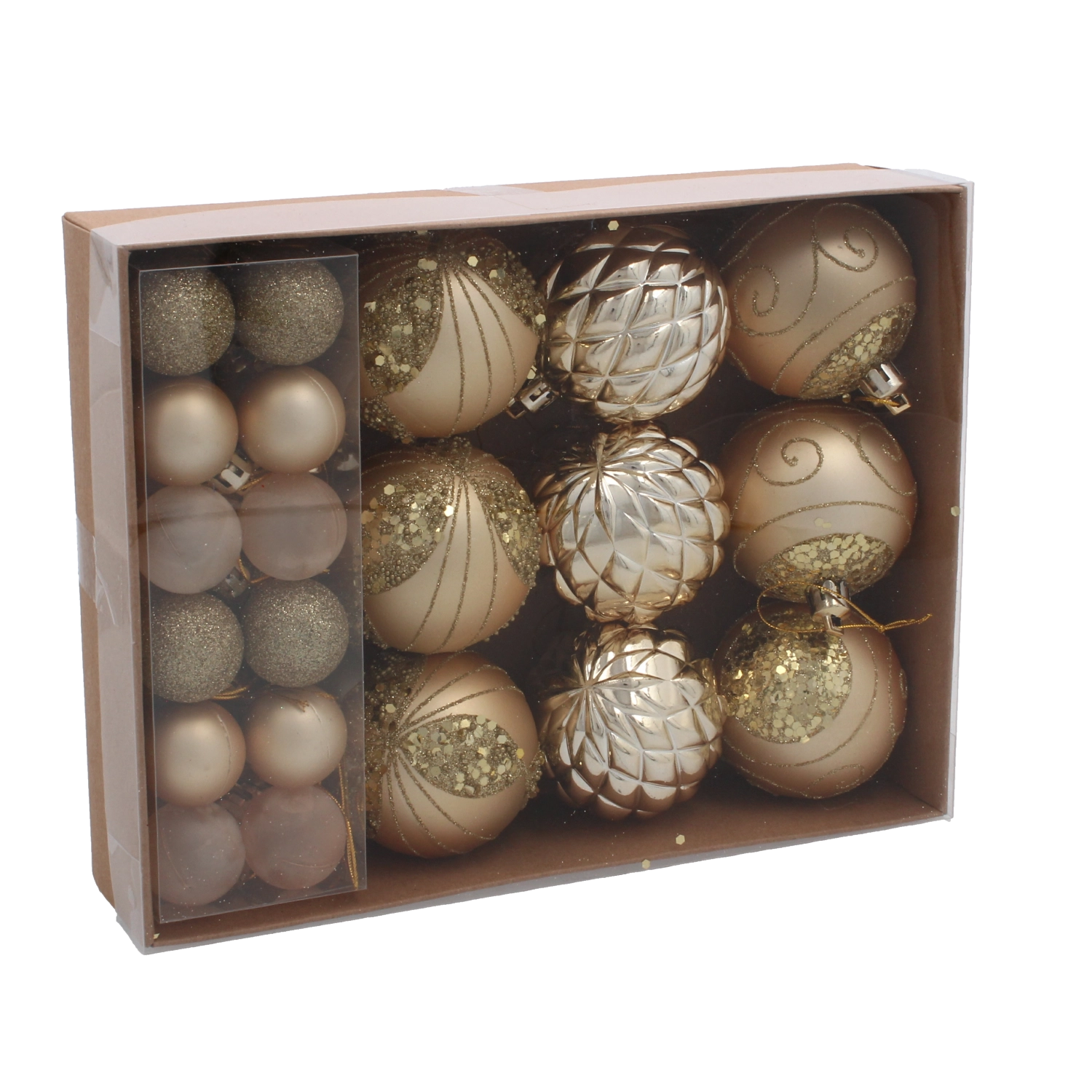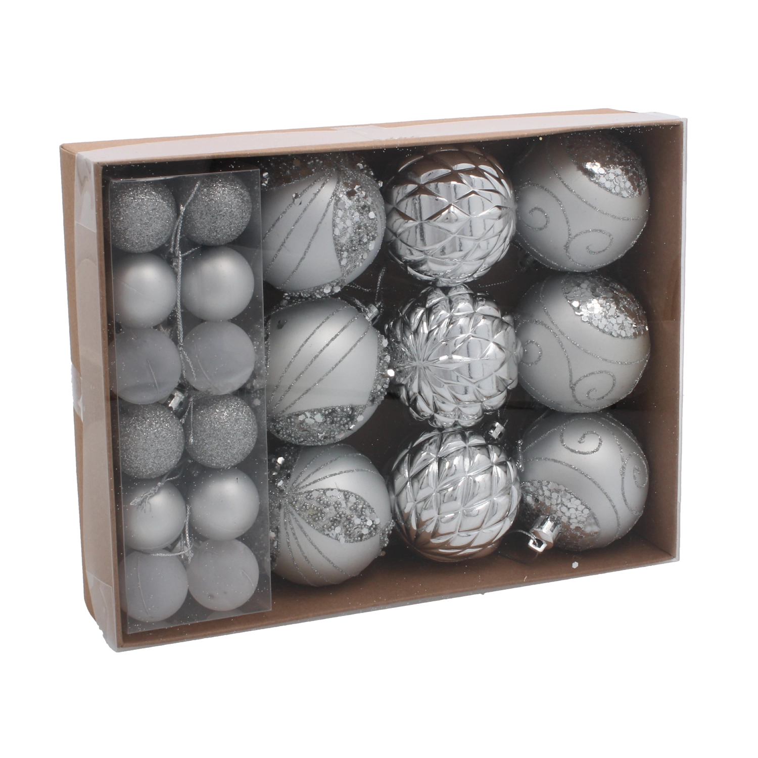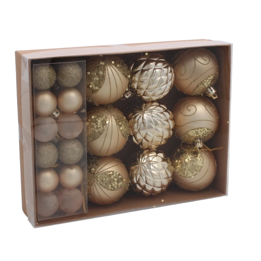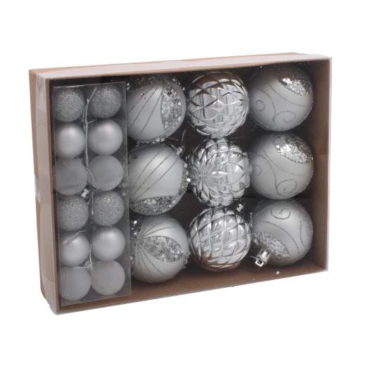 Vytvorte si doma čarovnú sviatočnú atmosféru so sadou 33 vianočných gúľ v klasickej kombinácii červenej, striebornej a zlatej. Ozdoby z odolného plastu sú ľahké, bezpečné a vhodné do domácností s deťmi. Rôzne povrchové úpravy – hladká, lesklá, brokátová aj zdobená – dodajú stromčeku hĺbku a trblietanie a ľahko ich zavesíte vďaka priloženým očkám.