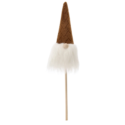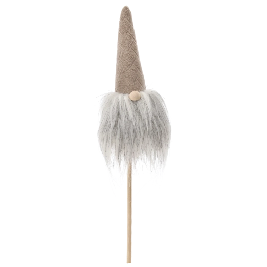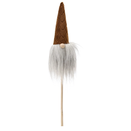 Tento vianočný škriatok je skvelou voľbou na rýchlu a efektnú výzdobu. Ľahká konštrukcia na drevenej tyčke umožňuje jednoduché zapichnutie do kvetináča, venca alebo aranžmánov, zatiaľ čo mäkké textílie a nadýchaná brada dodávajú dekorácii útulný, rustikálny vzhľad.