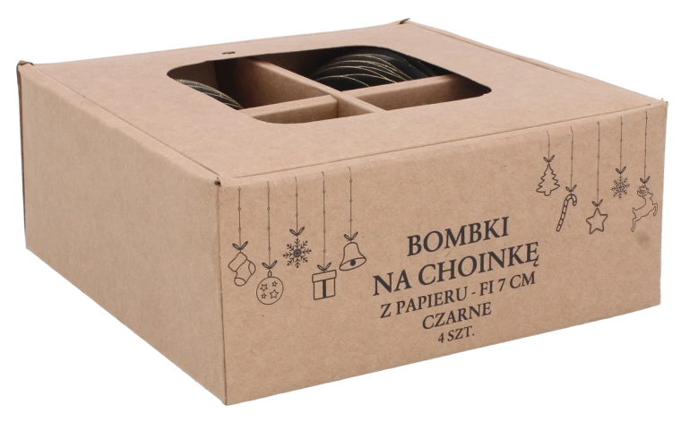 Štýlová sada vianočných gulí z papiera premení vašu sviatočnú výzdobu na modernú a nadčasovú. Čierny odtieň dodá interiéru sofistikovanosť, pritom zostáva univerzálny a ľahko kombinovateľný s kovovými akcentmi, drevom aj farebnými svetielkami. Vďaka nízkej hmotnosti sú ozdoby vhodné aj na jemnejšie vetvičky.