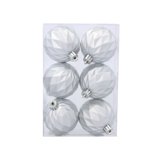 Táto súprava obsahuje 6 ľahkých a odolných ozdôb s diamantovým geometrickým vzorom, ktorý vytvára jemné odlesky aj v matnom prevedení. Vďaka netrieštivému materiálu sú ideálne do domácností s deťmi aj domácimi miláčikmi a skvele sa hodia na výzdobu vianočného stromčeka, vencov či girland.