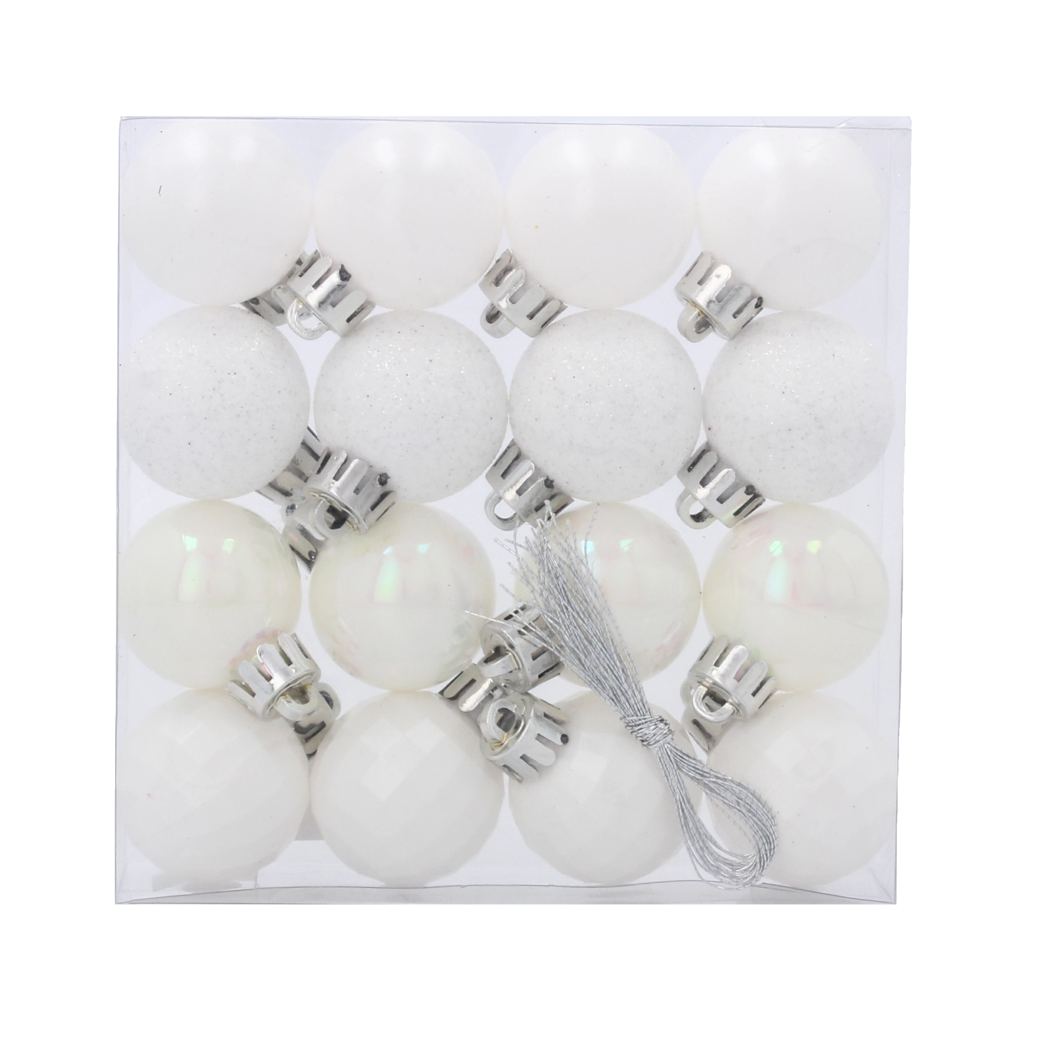 Táto univerzálna sada bielych gulí v kompaktnej veľkosti 3 cm je perfektná na zdobenie menších aj väčších stromčekov, vencov a dekorácií. Jednotná biela farba a štyri rôzne povrchové úpravy sa skvele kombinujú s tradičnými aj modernými doplnkami a podčiarknu sviatočnú atmosféru vášho domova.