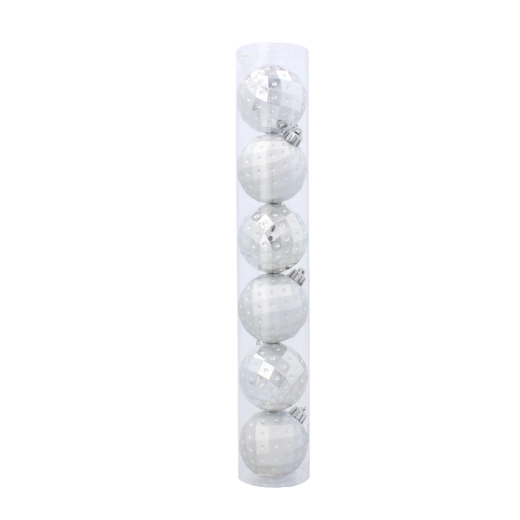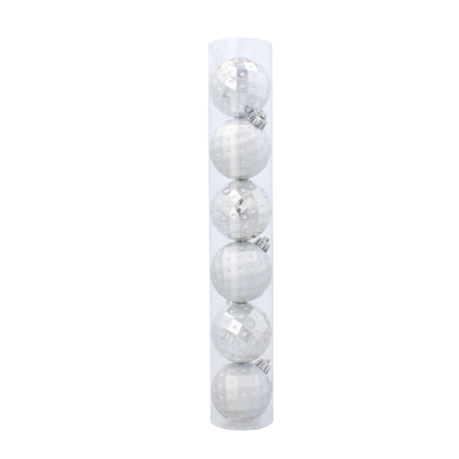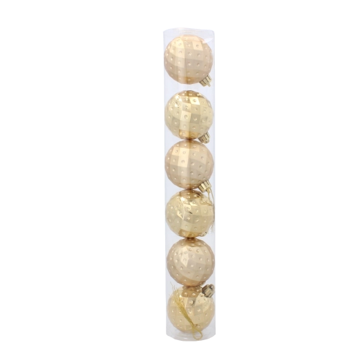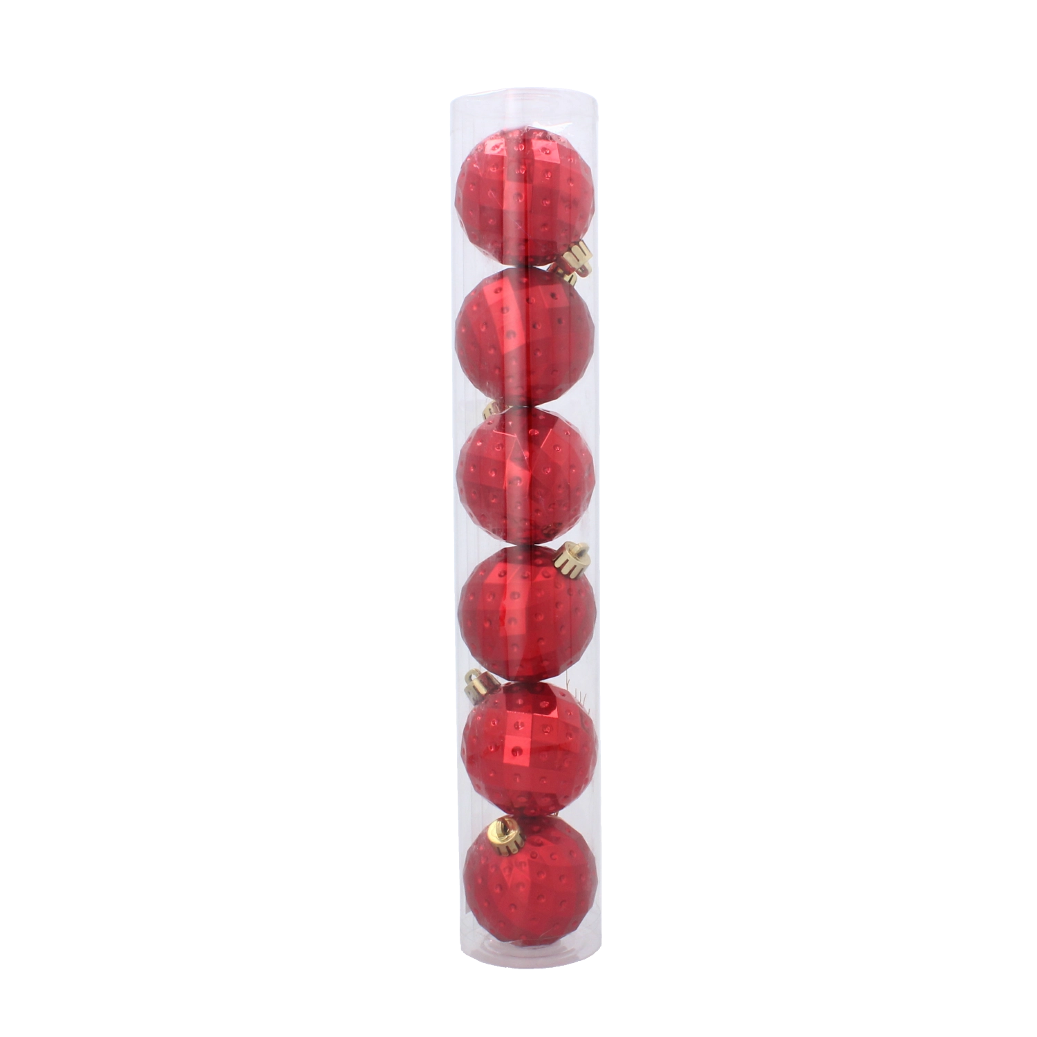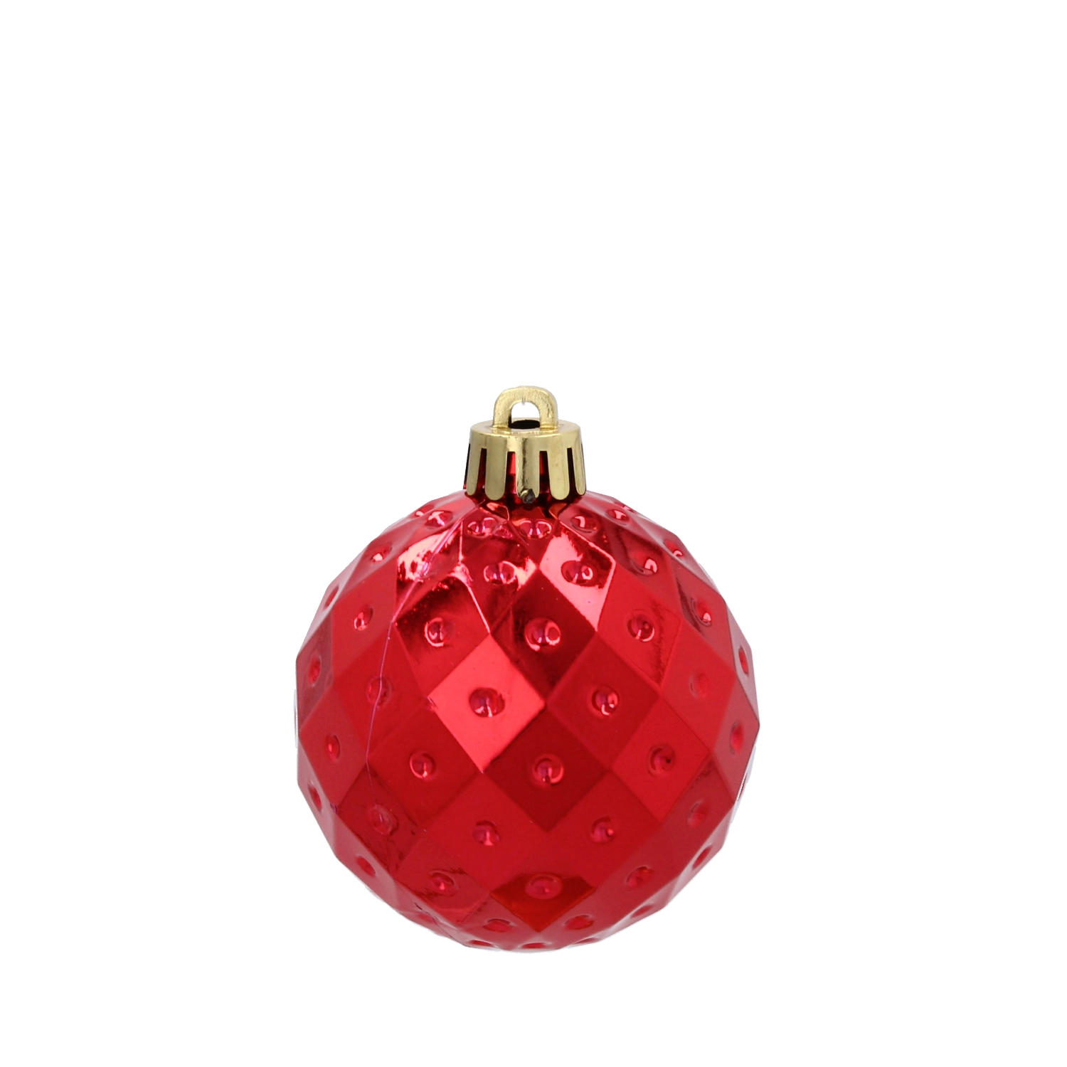 Elegantná sada šiestich vianočných gulí s priemerom 6 cm v kombinácii červenej, zlatej a striebornej farby rozžiari každý stromček. Ozdoby sú z nerozbitného plastu na bezpečné používanie, majú moderný geometrický reliéf a prichádzajú v praktickej priehľadnej tube so šnúrkami na jednoduché zavesenie.