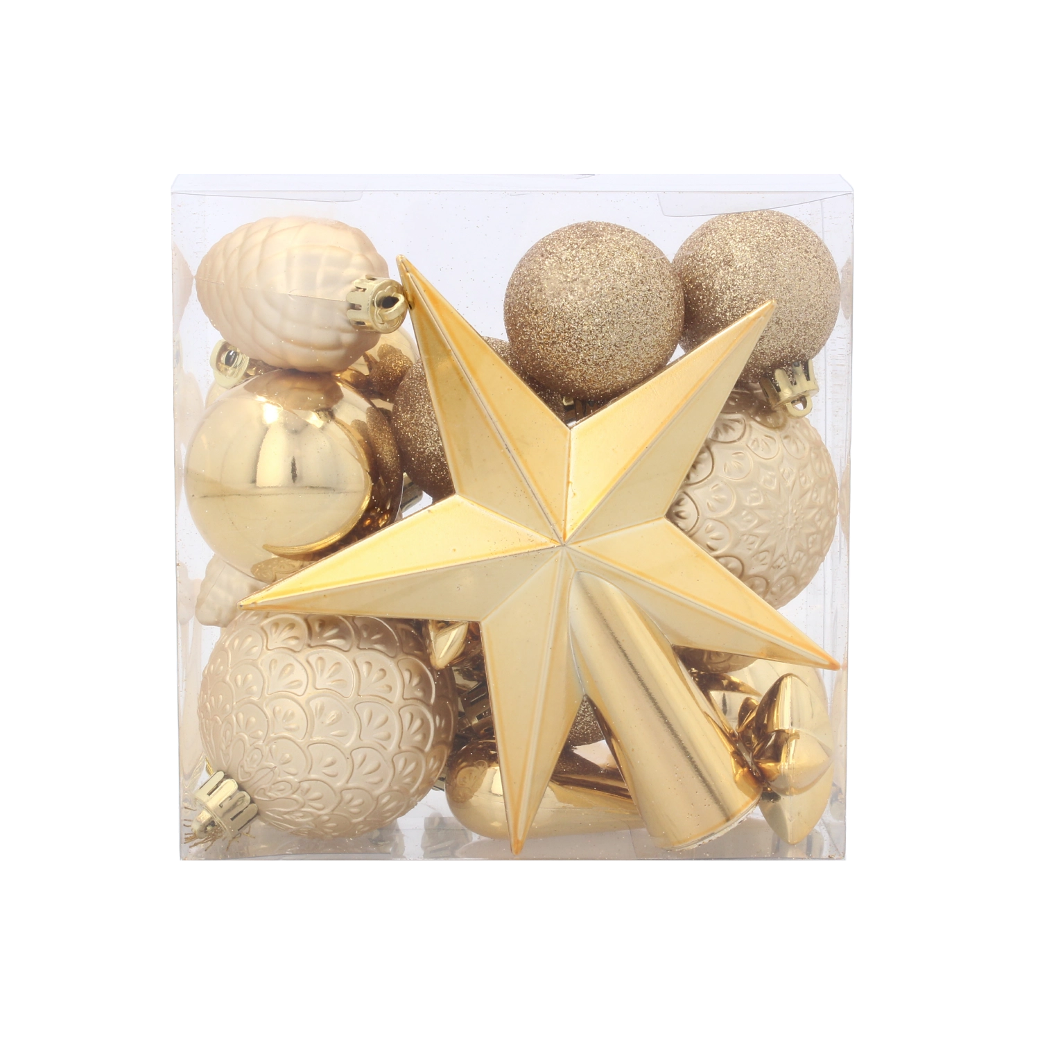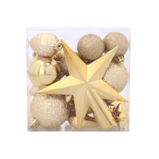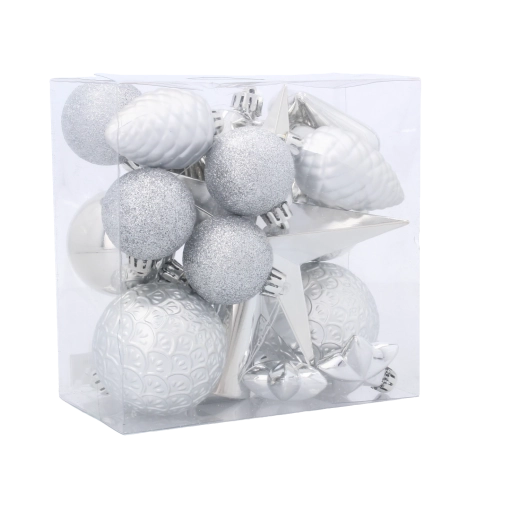 Táto starostlivo zladená súprava kombinuje klasické farby Vianoc pre dokonale zjednotený vzhľad vášho stromčeka. Lesklé, matné aj glitrové povrchy sa postarajú o efektné odrazy svetiel a vytvárajú príjemnú sviatočnú náladu.