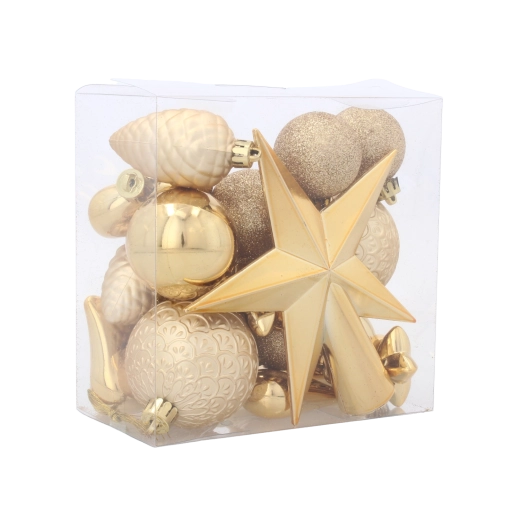 - 19-dielna súprava na kompletnú dekoráciu menšieho až stredného stromčeka