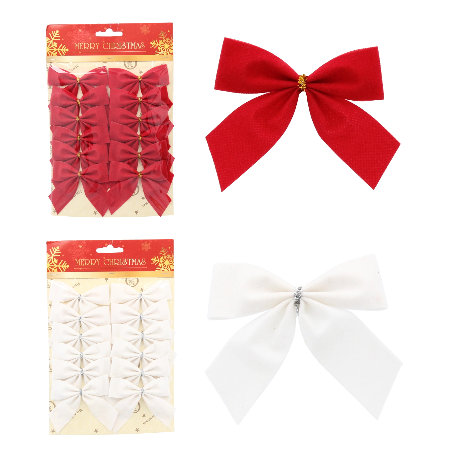 Dodajte svojim sviatočným aranžmánom štýl s touto univerzálnou sadou maší. Kombinácia klasickej červenej a bielej dokonale ladí s rôznymi štýlmi výzdoby a zamatová textura vytvára elegantný a hrejivý vzhľad. Vďaka kompaktným rozmerom 8×6 cm sú mašle ideálne na menšie vetvy, darčekové balíčky aj adventné dekorácie.