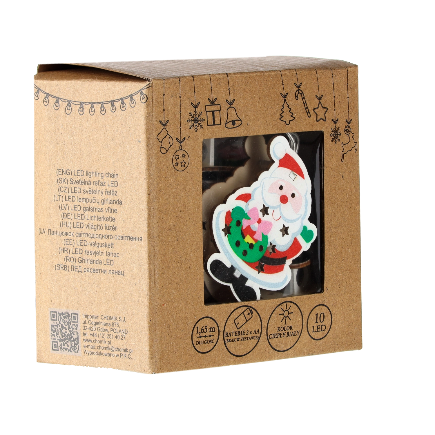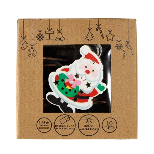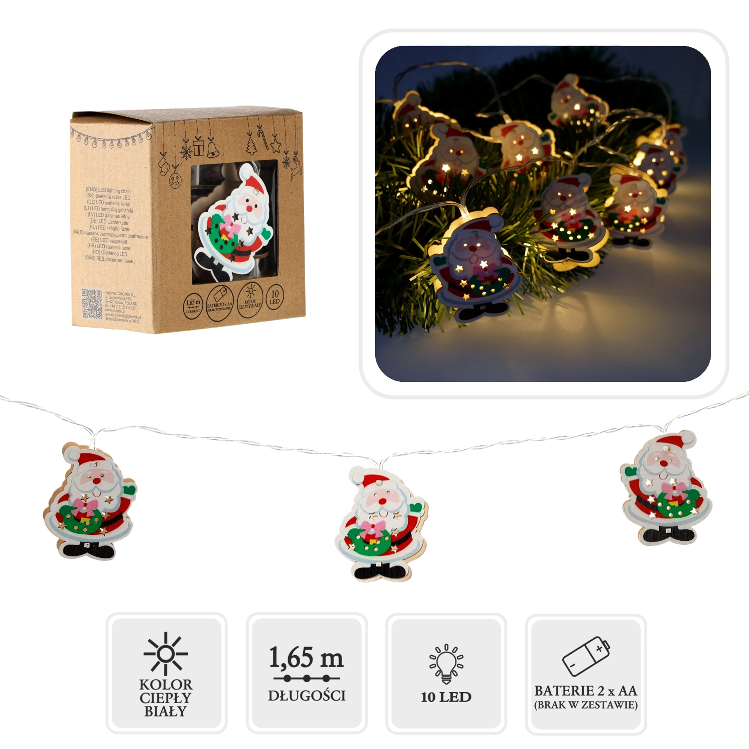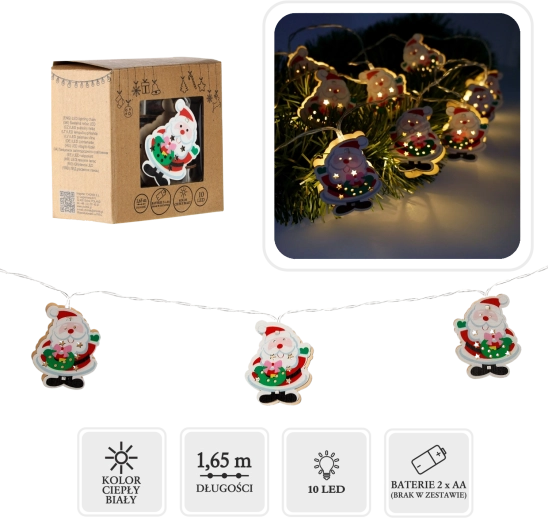 Štýlový drevený svetelný reťaz so SANTOM je ideálny na vianočnú výzdobu interiéru. Vďaka teplému bielemu svetlu pôsobí príjemne a hrejivo, zatiaľ čo ľahké prevedenie a tenký vodič umožňujú jednoduché naaranžovanie na stromček, veniec, zábradlie či police.