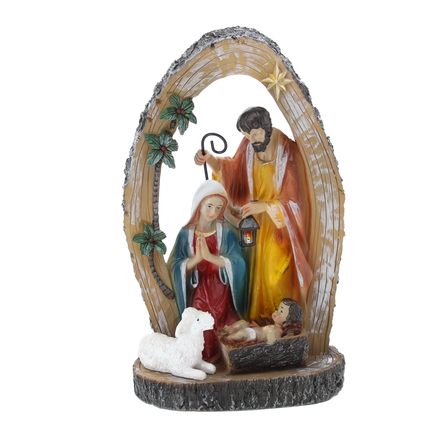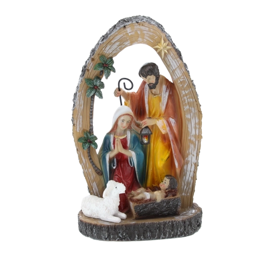 Táto vysoko kvalitná vianočná figúrka zobrazuje Máriu v modlitbe, Jozefa s lampášom a Ježiška v jasličkách, doplnené o pastiera, ovečku a betlehemskú hviezdu. Kombinácia tradičného motívu a decentného prevedenia vnesie do interiéru pokoj, harmóniu a duchovný rozmer sviatočných dní.