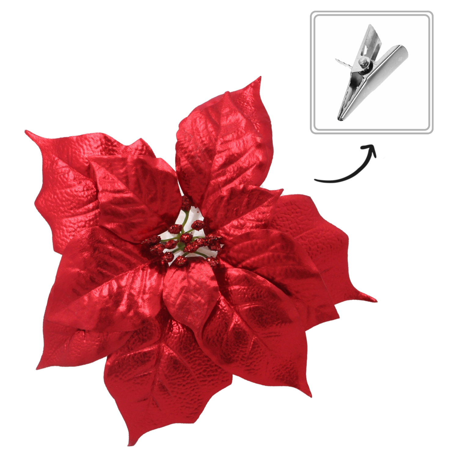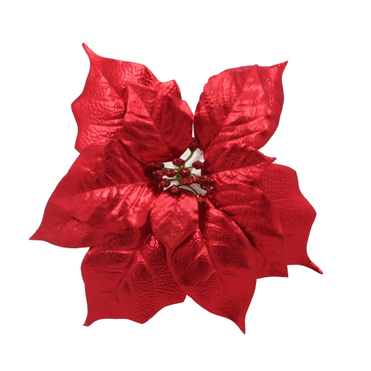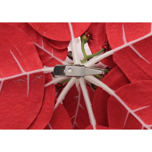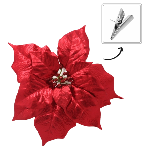 Táto realistická umelá poinsettia verne napodobňuje prirodzený tvar a štruktúru kvetu a vďaka brokátovým akcentom krásne odráža svetlo vianočných ozdôb. Univerzálny dizajn sa ľahko zladí s moderným aj tradičným štýlom výzdoby a vytvorí harmonickú sviatočnú kompozíciu.