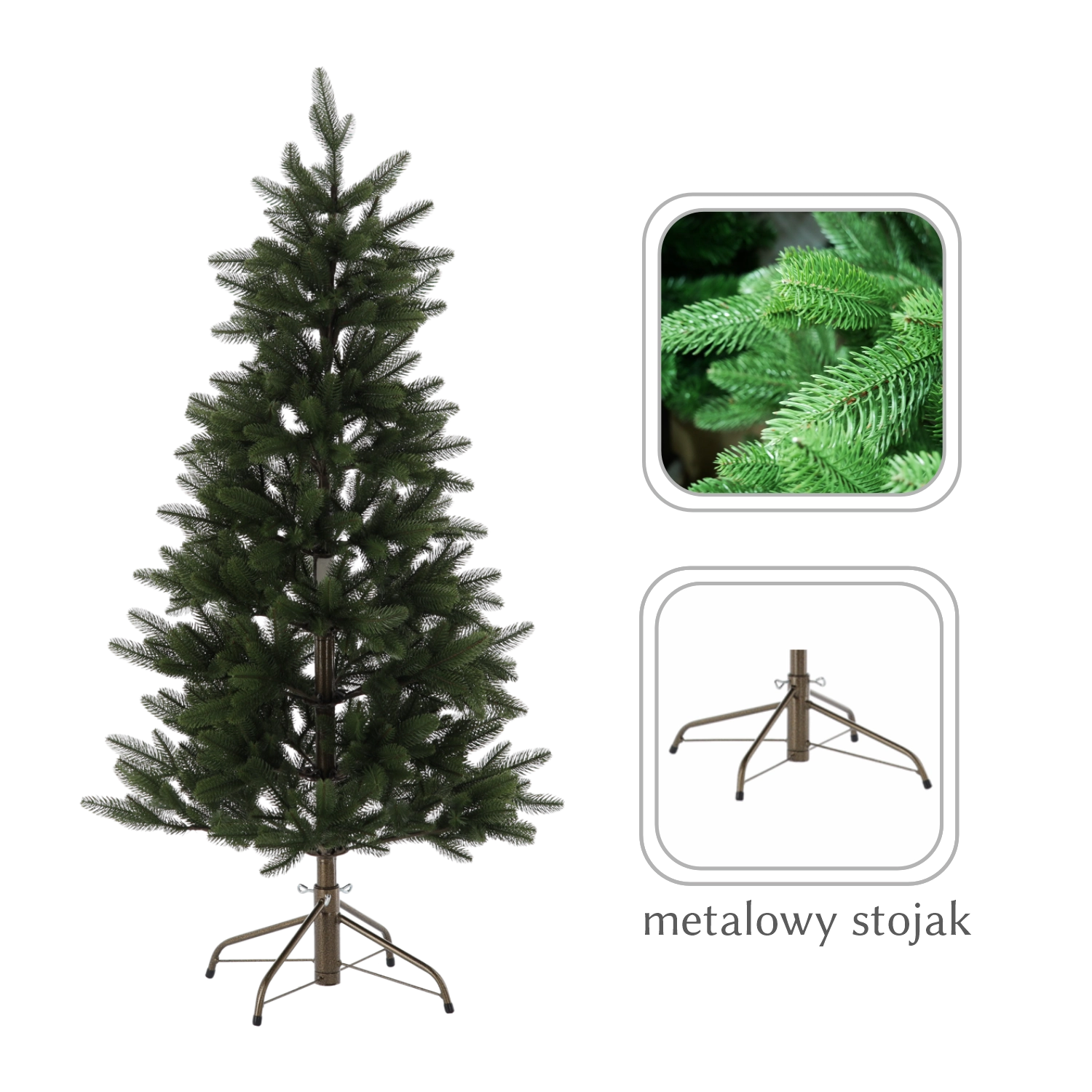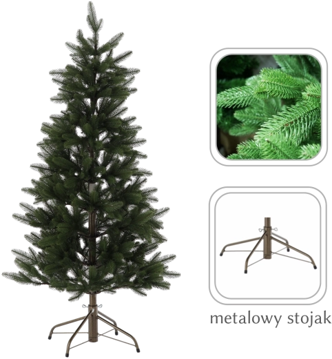 Robustný kovový stojan zaisťuje výbornú stabilitu a bezpečnosť. Stromček možno behom chvíľky zložiť aj rozložiť, takže sa ľahko skladuje a je pripravený na ďalšie sezóny. Vďaka odolnej konštrukcii je ideálny do rodín s deťmi či domácimi miláčikmi – bez neporiadku a bez údržby typickej pre živé stromy.