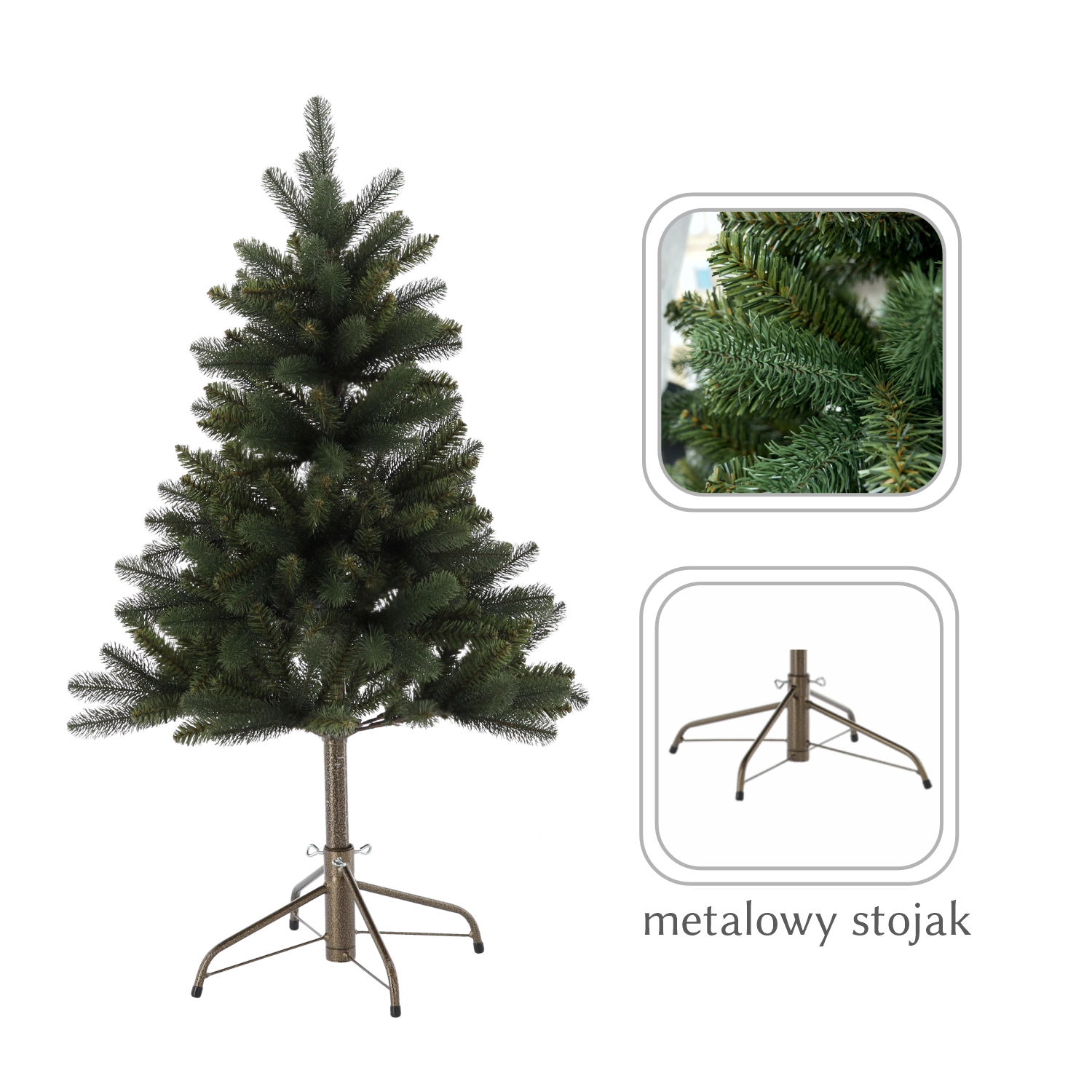 Syntetický vianočný stromček Auróra s výškou 120 cm prináša vzhľad klasickej jedle v praktickom vyhotovení. Husto osadené vetvy verne napodobňujú prírodné ihličie, takže stromček vyzerá bohato aj bez nadmerného zdobenia. Vďaka kvalitnému PVC materiálu je odolný a opakovane použiteľný, čo šetrí čas, peniaze aj životné prostredie.