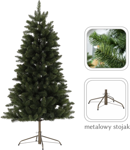 Syntetický vianočný stromček s výškou 180 cm prináša do domova autentickú sviatočnú atmosféru bez starostí s opadávaním ihličia. Vďaka realistickému vzhľadu, sýtozelenej farbe a pevnej konštrukcii vetiev je ideálny na bohaté zdobenie a dlhodobé používanie. Jednoduchá montáž a demontáž uľahčí skladovanie aj opätovné použitie rok čo rok.