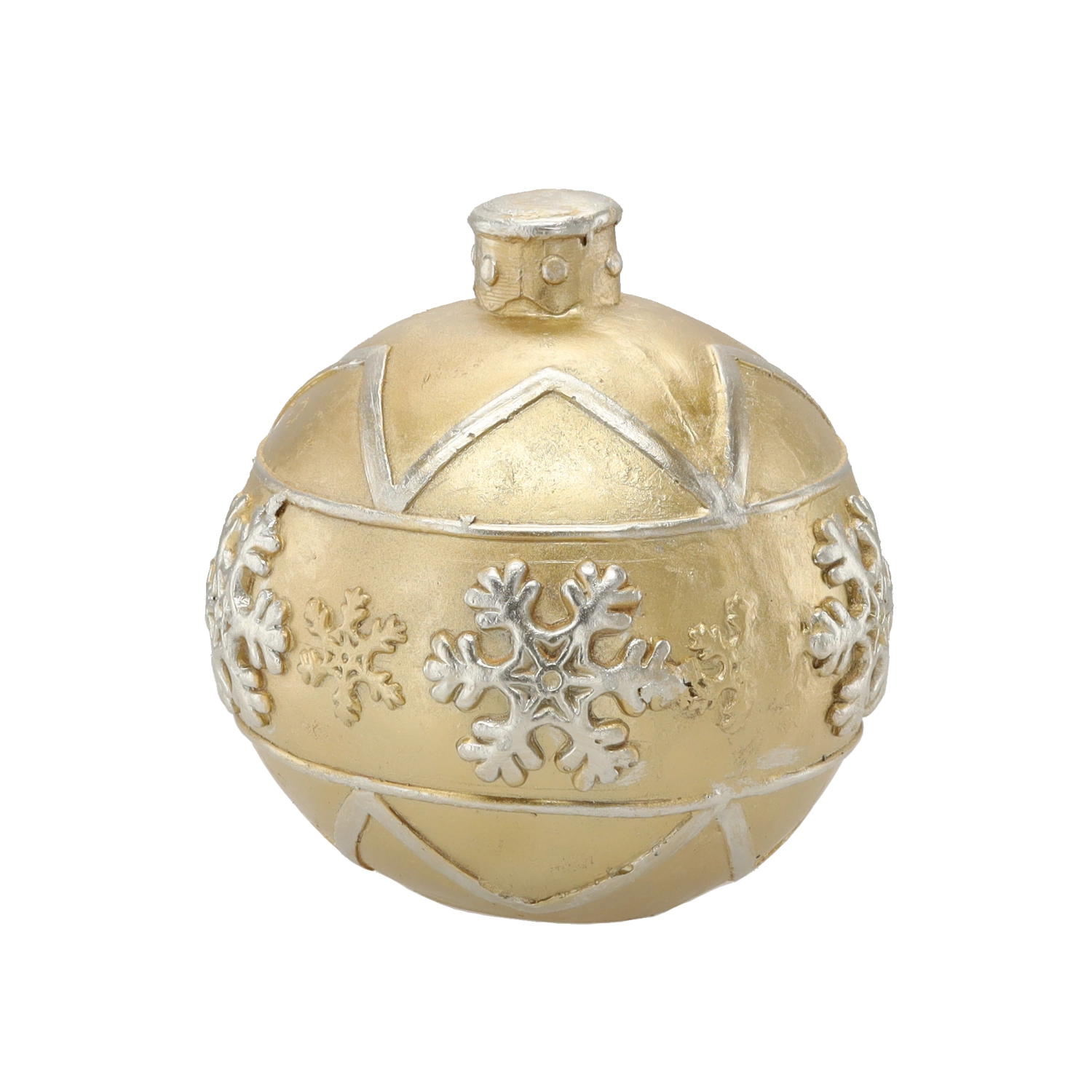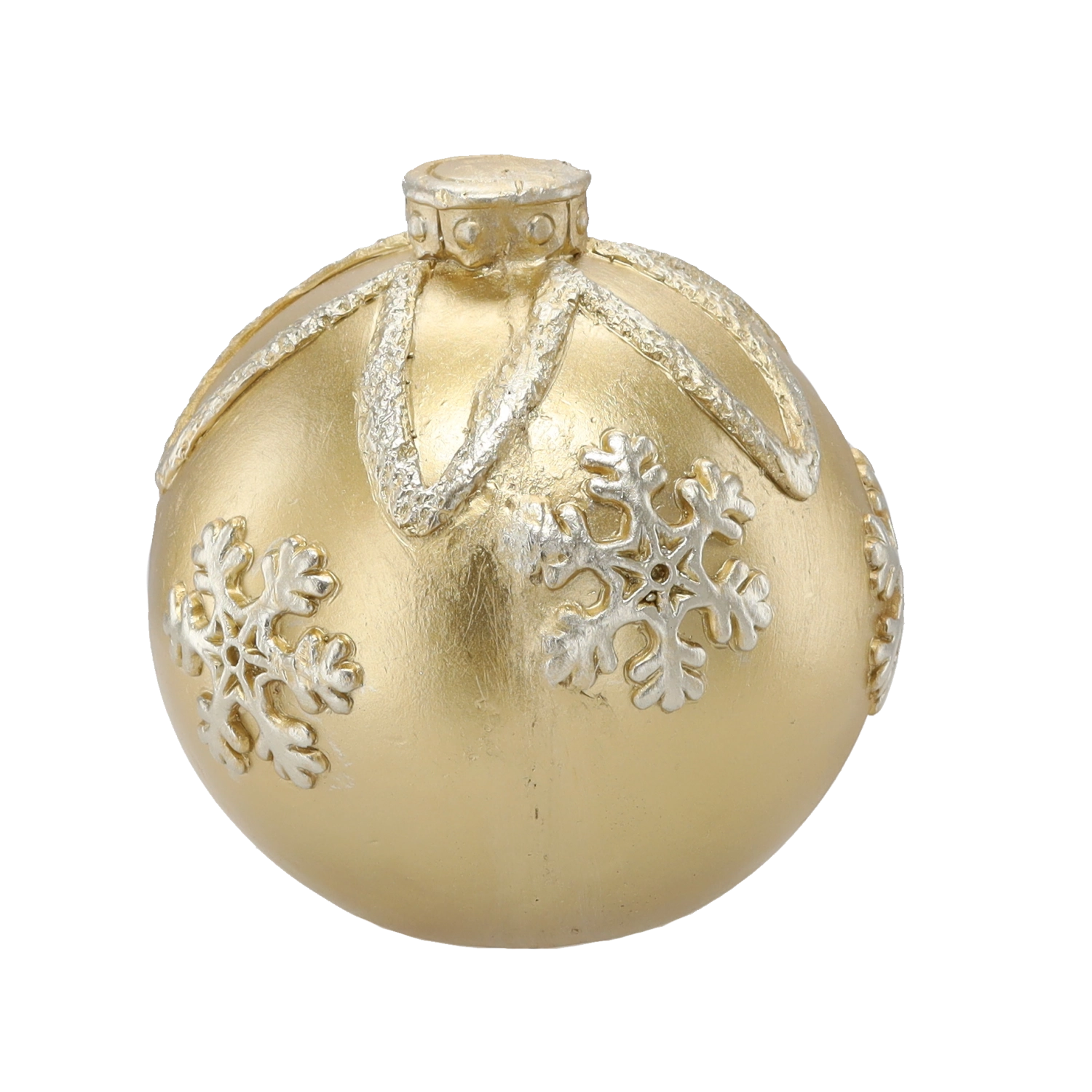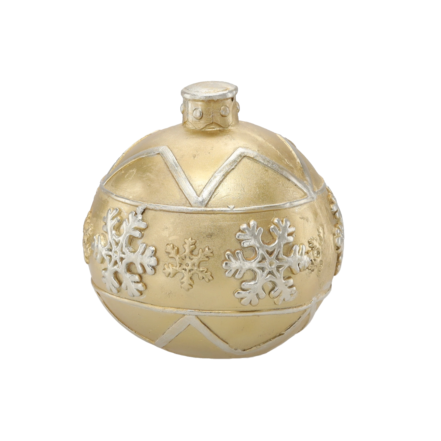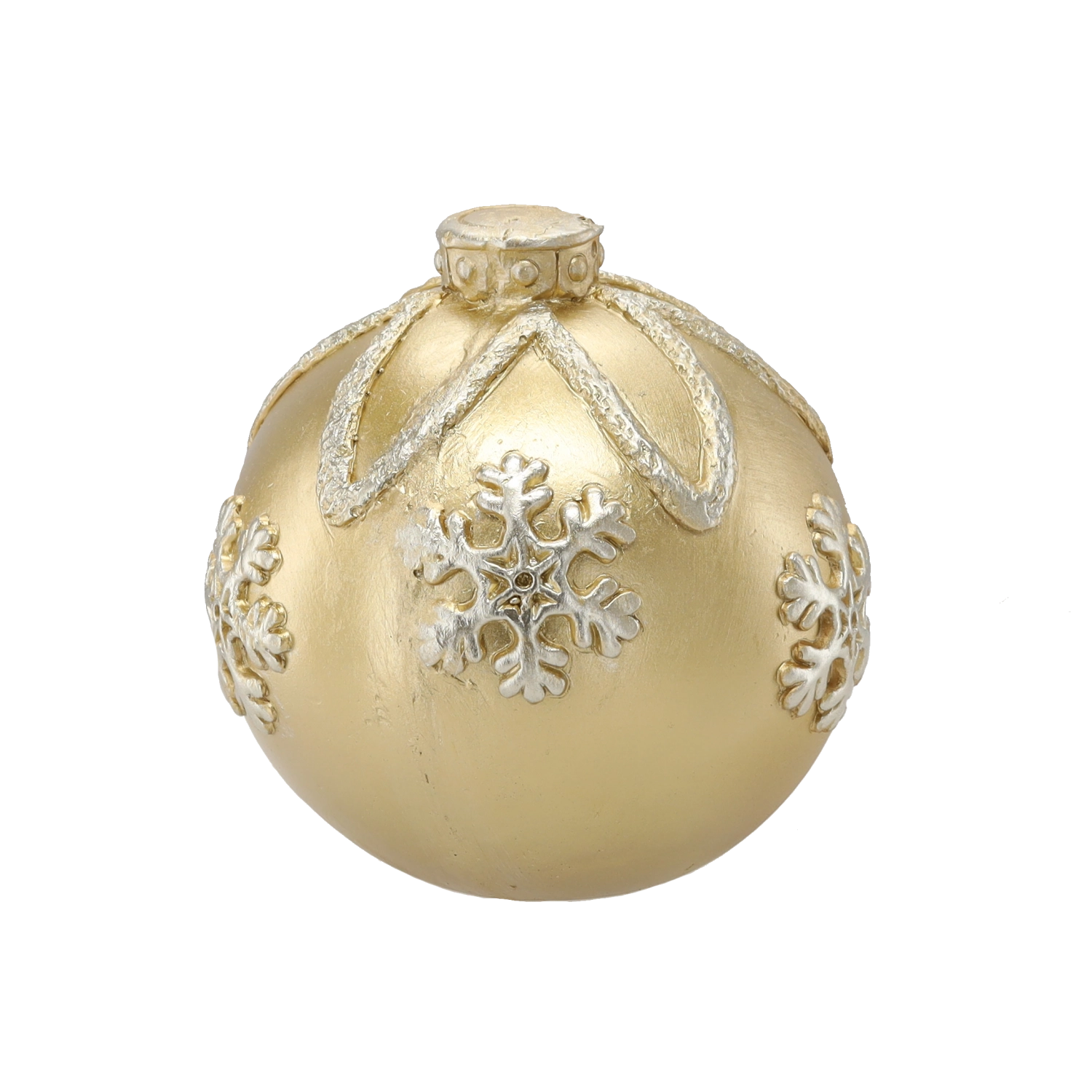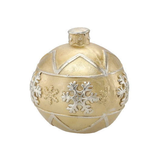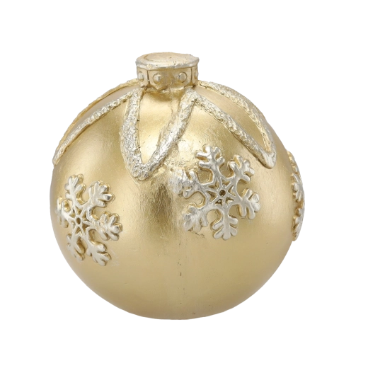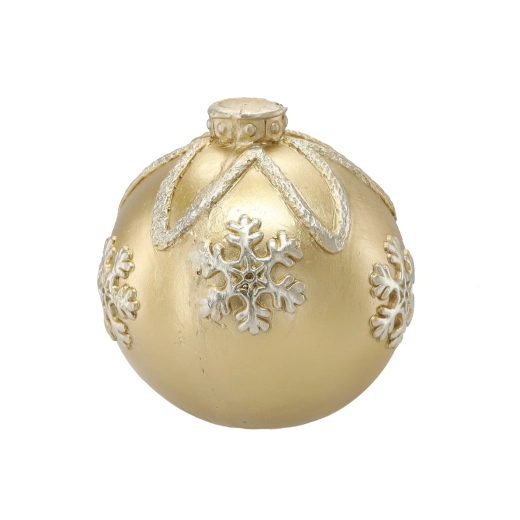 Elegantná zlatá vianočná guľa s priemerom 21,5 cm dodá vášmu domovu sviatočnú atmosféru. Lesklý povrch a plastické vzory snehových vločiek z nej robia výraznú dekoráciu pre väčšie vianočné stromčeky aj samostatné aranžmány. Vyrobená z kvalitného, odolného materiálu pre dlhú životnosť.