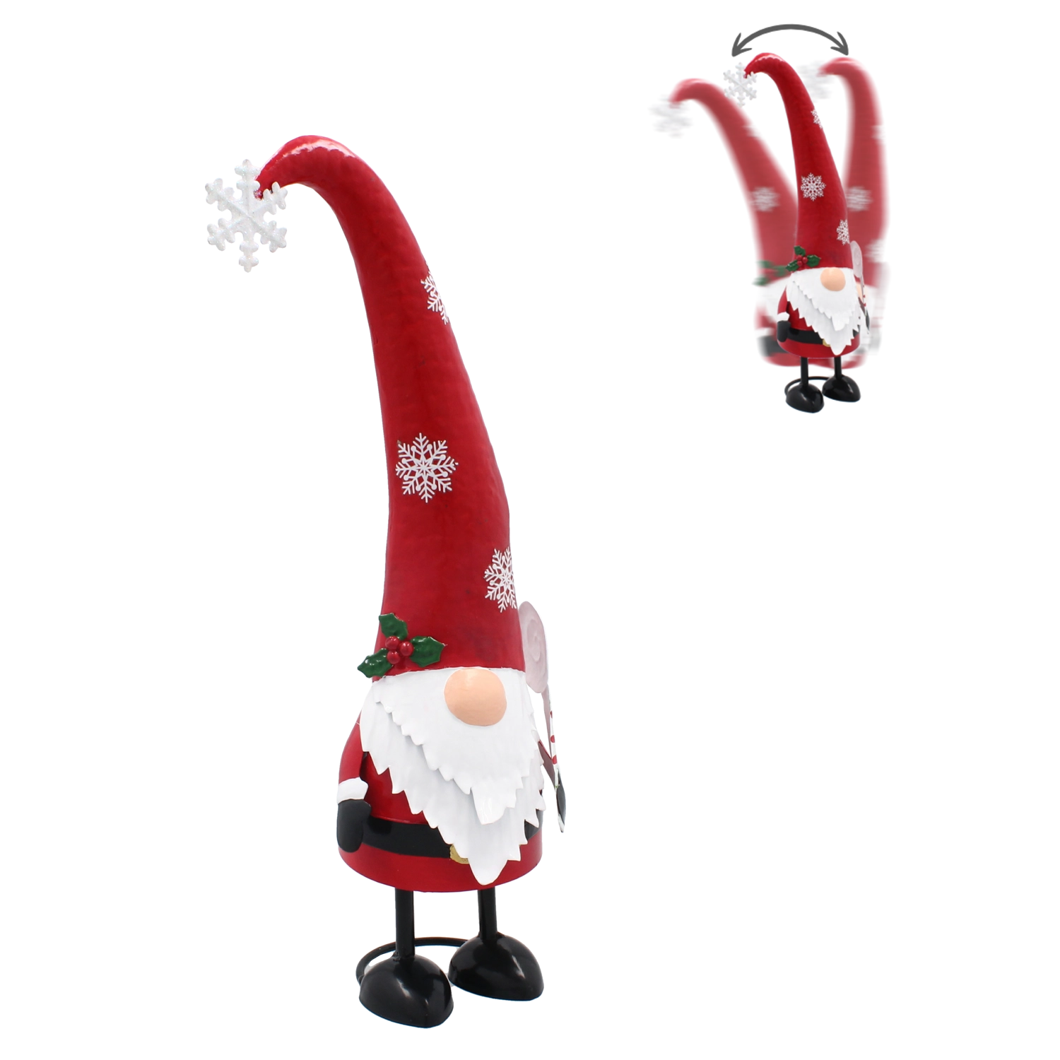 Vytvorte si doma útulnú sviatočnú atmosféru s kovovým škriatkom s dlhou čiapkou. Táto nadčasová dekorácia vyniká precíznym spracovaním, stabilitou a odolnosťou, takže vám bude robiť radosť po mnoho sezón. Kombinácia červenej a striebornej farby dokonale ladí s tradičným vianočným aranžmánom.