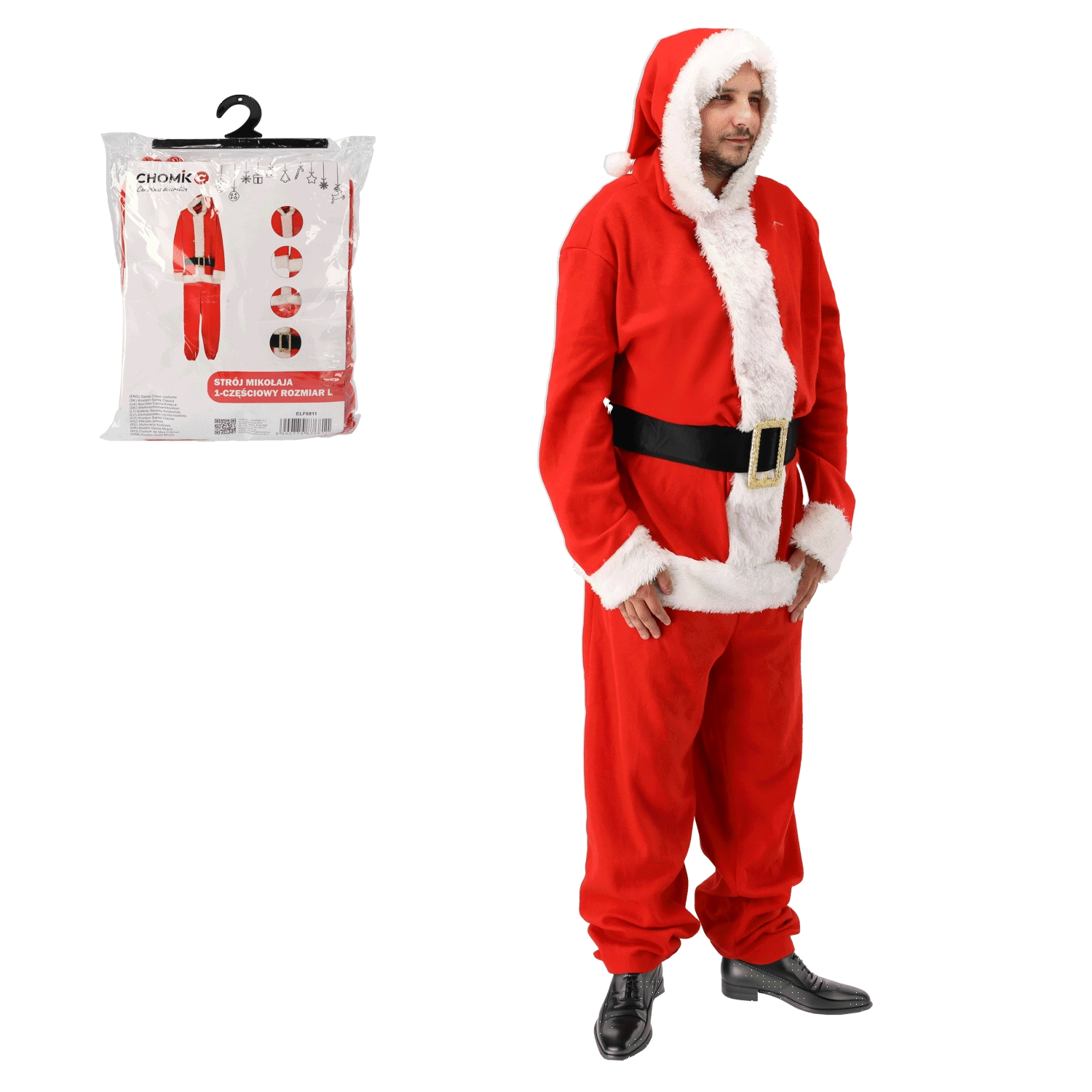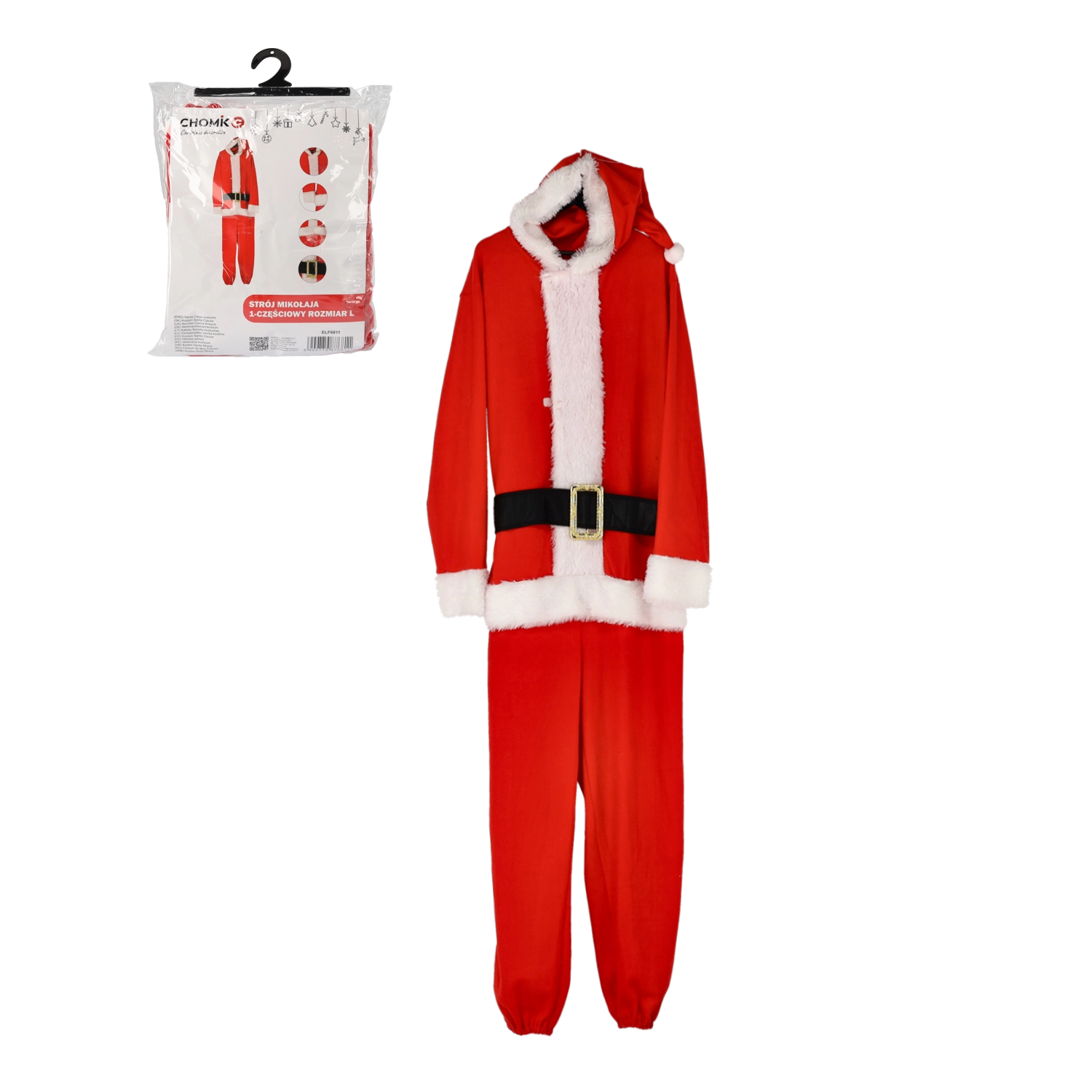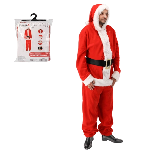 Štýlový a praktický kostým Santa Clausa, ktorý oblečiete behom chvíľky. Vďaka jednodielnemu strihu sa skvele nosí, netlačí a poskytuje maximálnu voľnosť pohybu. Červené prevedenie s bielou chlpatou lemovkou a dekoratívnym opaskom zaistí autentický vianočný vzhľad na každej akcii.
