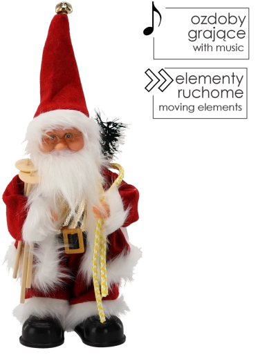 Vneste do domova zimné kúzlo a atmosféru Vianoc. Tento rozkošný Santa s lyžami je dekoratívna figúrka, ktorá prehráva vianočné melódie, má pohyblivé prvky a vďaka kvalitnému spracovaniu a tradičnému červenému obleku s kožušinkou okamžite vytvorí sviatočnú náladu.