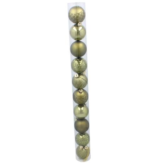 Vylaďte svoju vianočnú výzdobu elegantnou sadou 10 ozdôb, ktoré sa skvelo kombinujú s tradičnými aj súčasnými dekoráciami. Harmonická paleta olivovej, medenej a grafitovej vytvára jedinečný, nadčasový efekt a dodá interiéru teplo aj šmrnc.