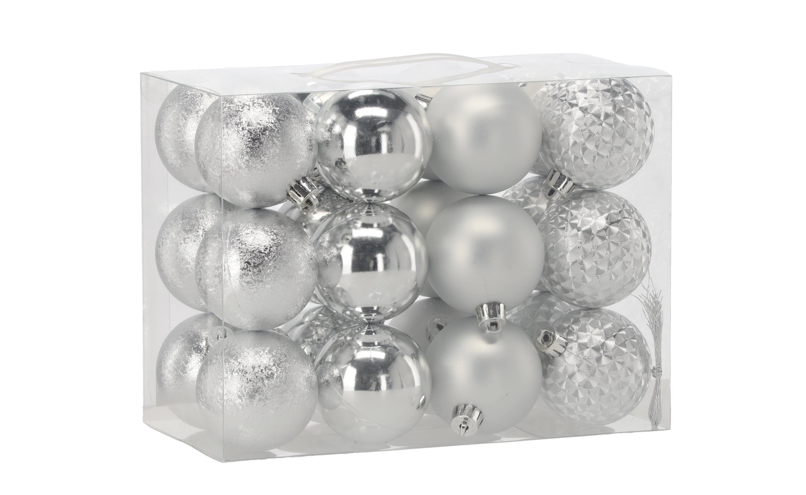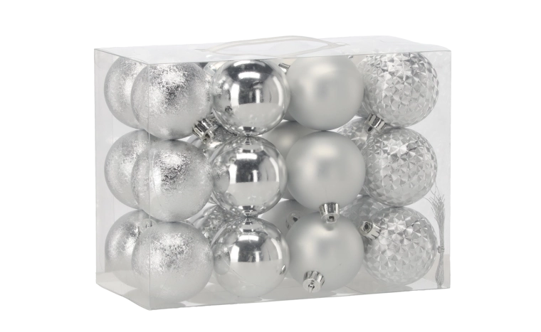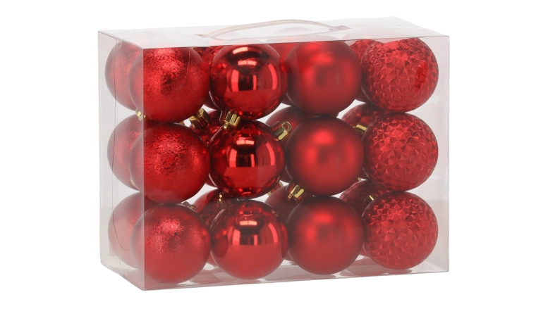 Vytvorte dokonalú sviatočnú atmosféru s univerzálnou sadou vianočných gúľ, ktoré kombinujú tradičné farby s rôznymi povrchmi a vzormi – lesk, mat, trbliet a štruktúrované prevedenie. Každá ozdoba má kovový vrchnáčik s očkom a jemnú šnúrku na rýchle zavesenie.