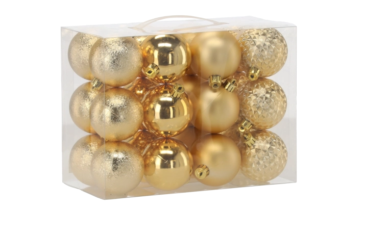 Lesklé, matné, trblietavé aj štruktúrované povrchy vytvárajú bohatý vizuálny efekt, ktorý rozžiari každý vianočný stromček aj aranžmán.