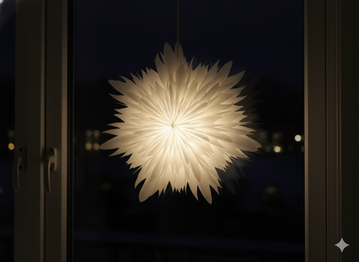Biely papier krásne rozptyľuje teplé svetlo a dodá interiéru mäkký, sviatočný nádych – ideálne do okien, nad stôl alebo do obývacej izby.