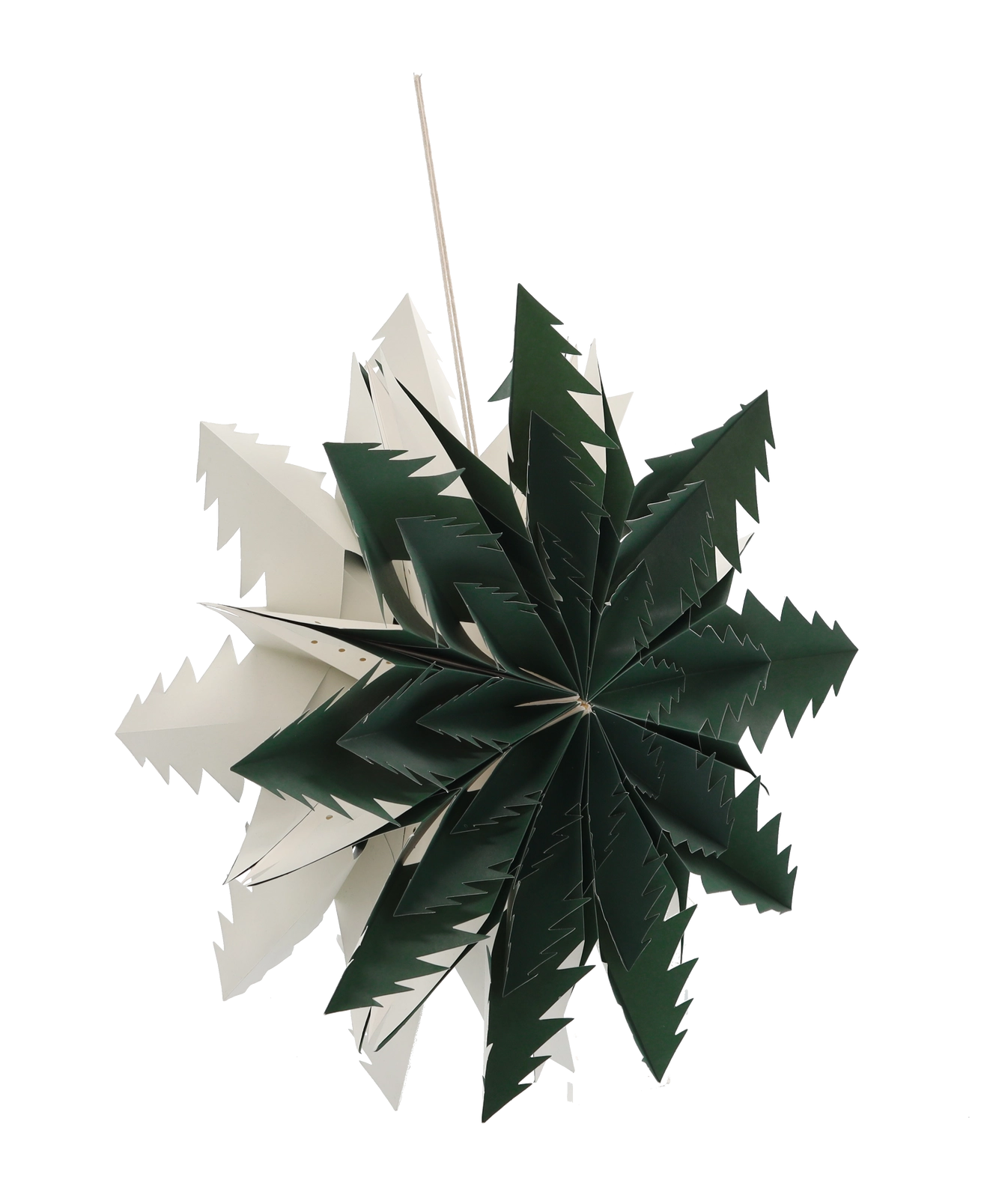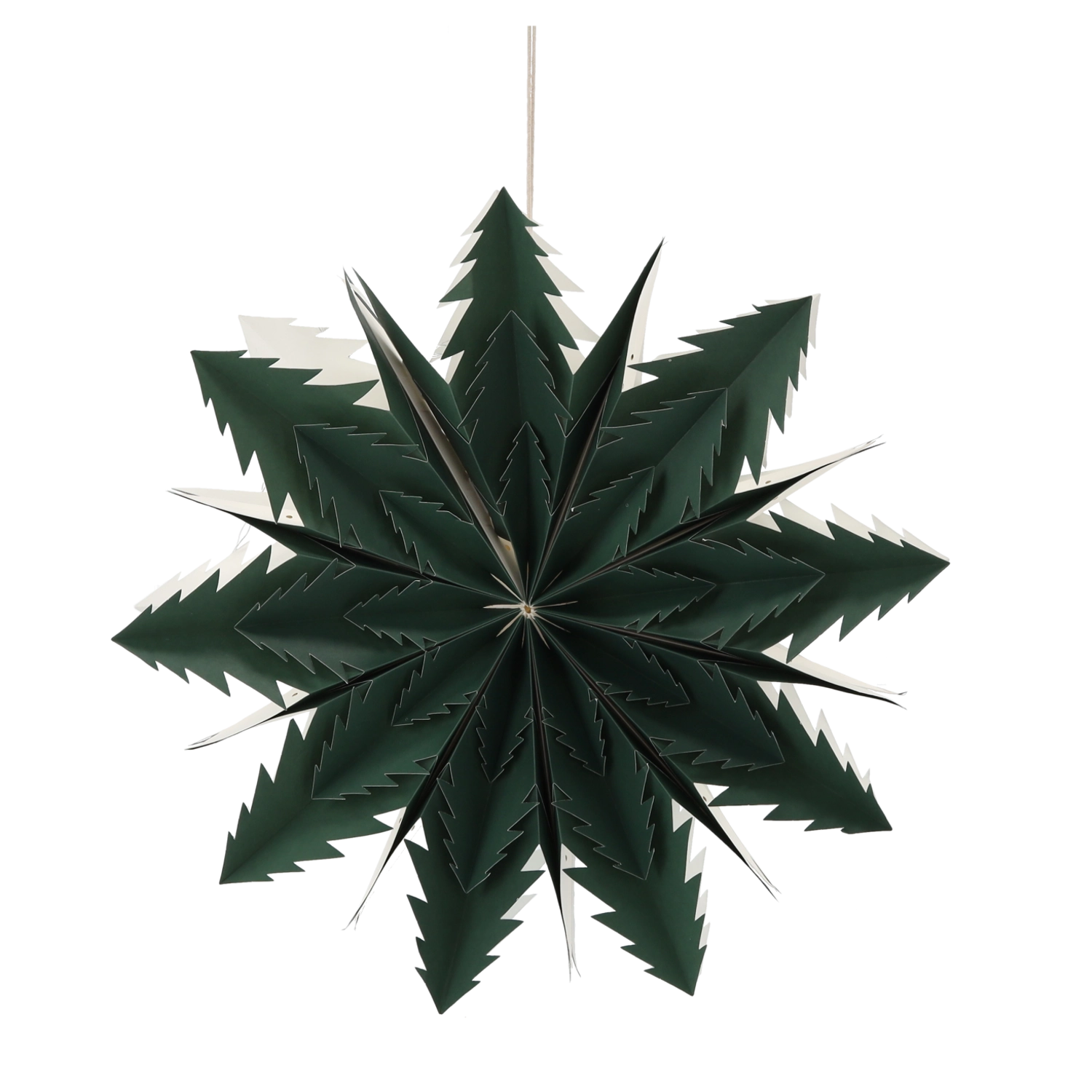 Táto štýlová papierová hviezda v tmavozelenom odtieni je nadčasovou zimnou a sviatočnou dekoráciou. Ľahká, skladacia a opakovane použiteľná – behom chvíľky ju zavesíte do okna, na strop alebo do výkladnej skrine a vytvoríte príjemné náladové osvetlenie s útulným čarom.