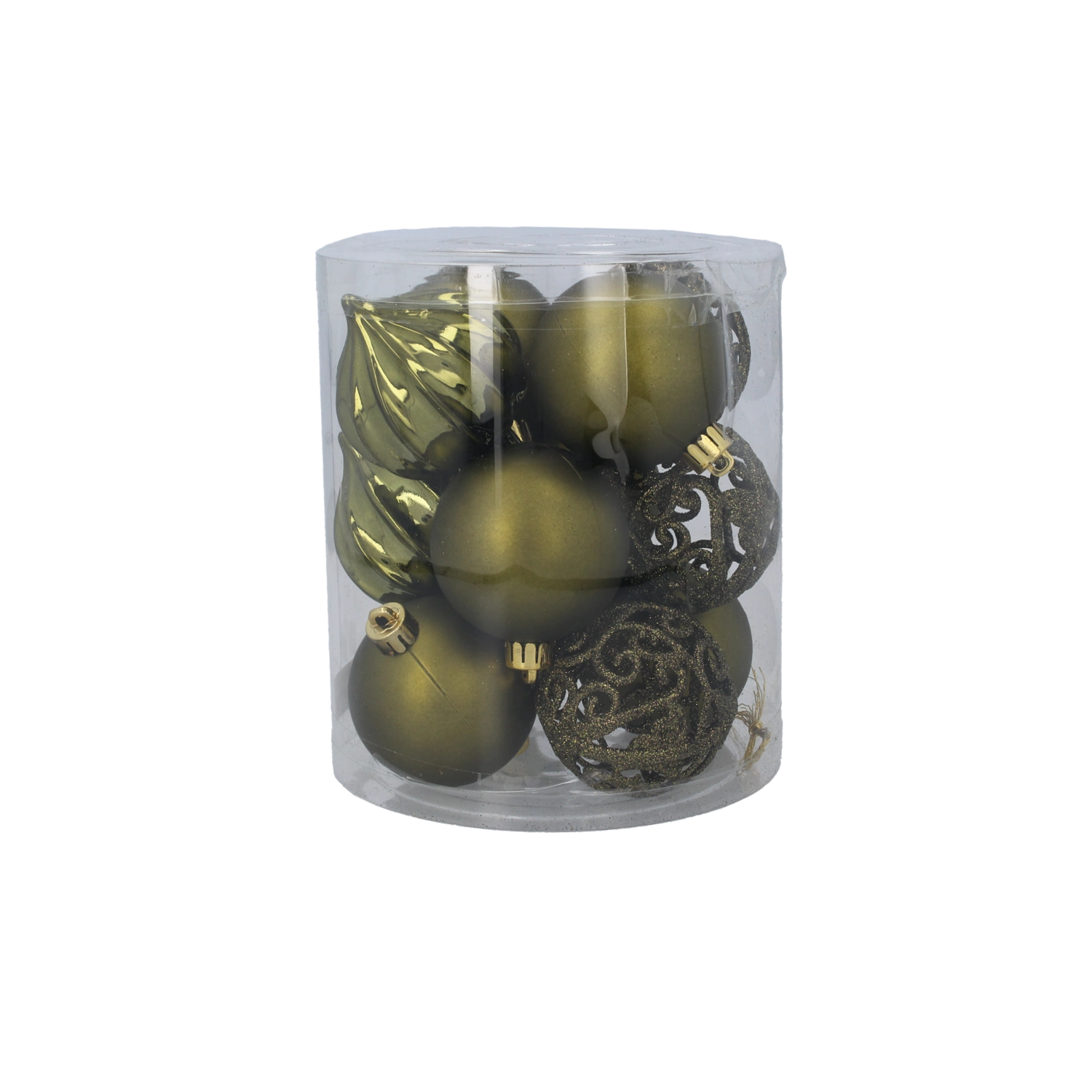 Táto univerzálna sada vianočných ozdôb v módnych tónoch olivovej, medenej a grafitovej skvele zapadne do minimalistických, prírodných aj luxusných dekorácií. Ľahký a nerozbitný plast je ideálnou voľbou do rodín s deťmi či domácimi miláčikmi – dekorujte bez starostí a s maximálnou bezpečnosťou.