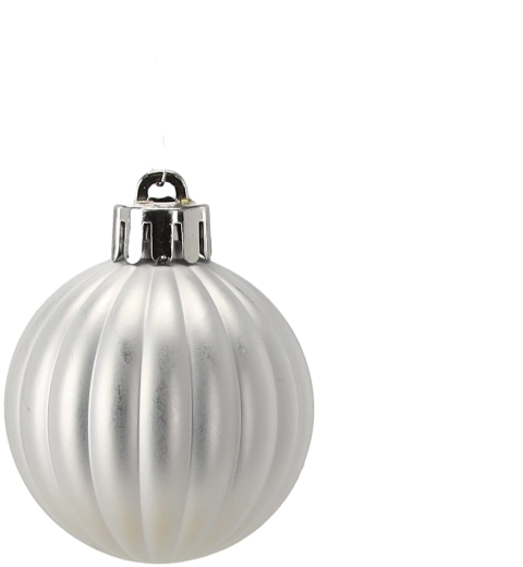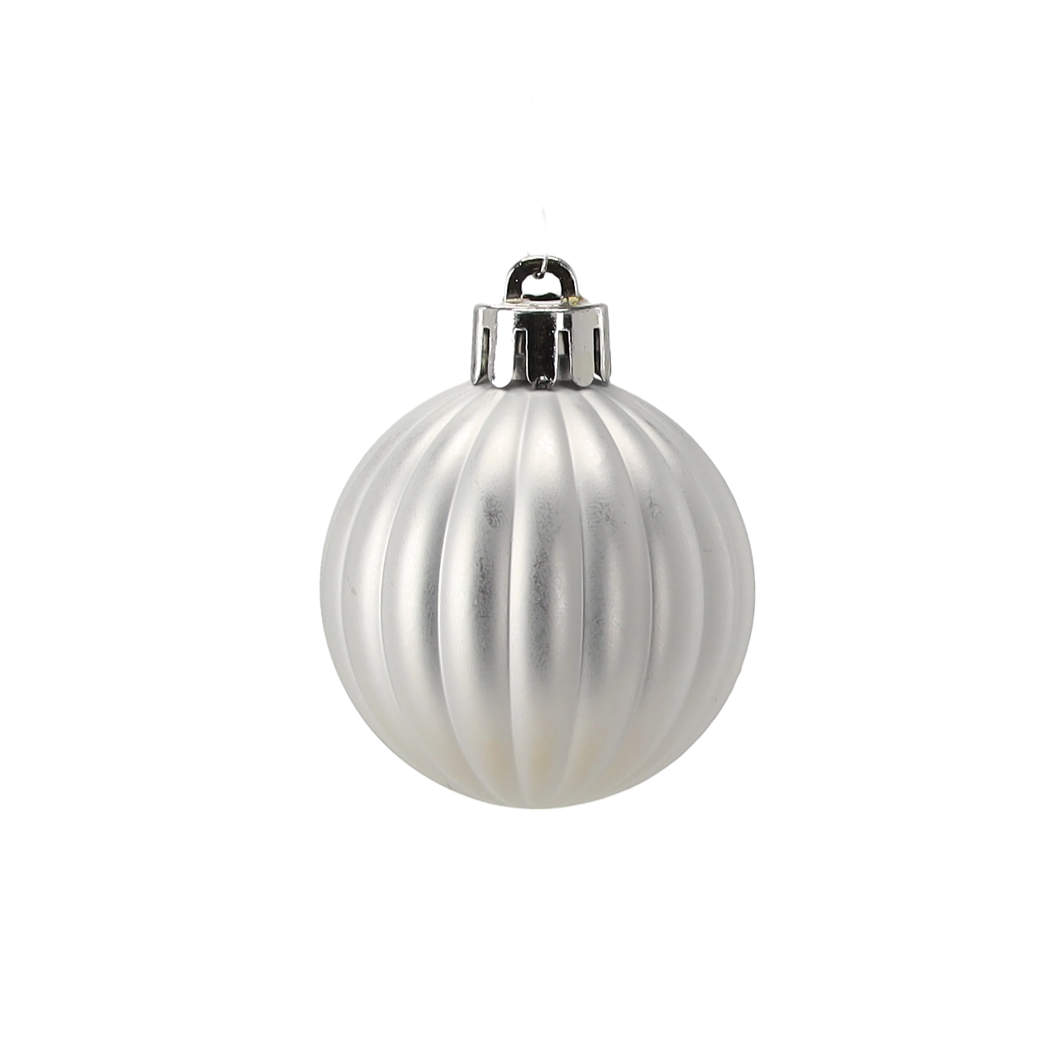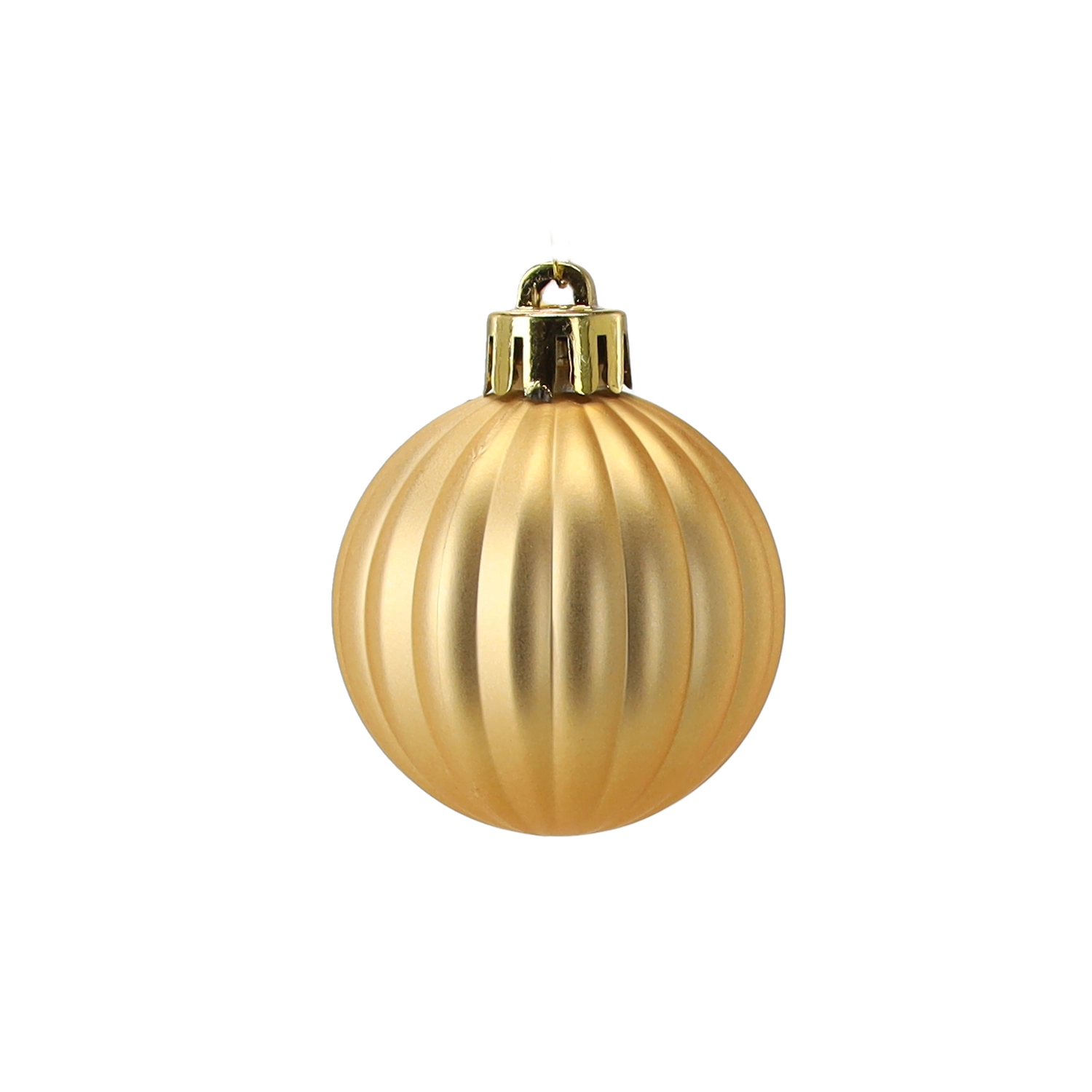 Matné ryhované gule vytvárajú decentný kontrast k lesklým a glitrovým variantom a zabezpečujú vizuálnu hĺbku na stromčeku.