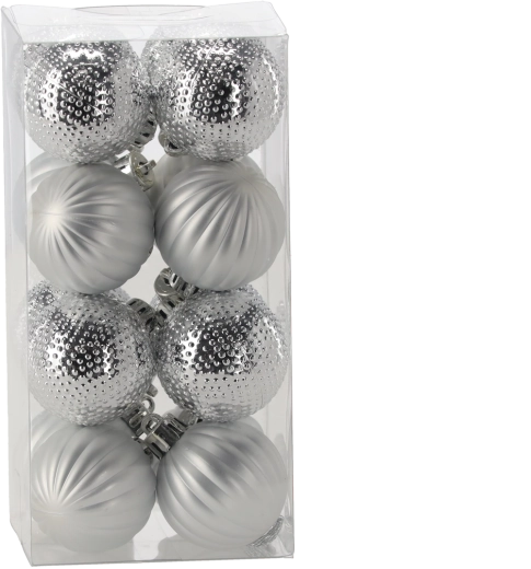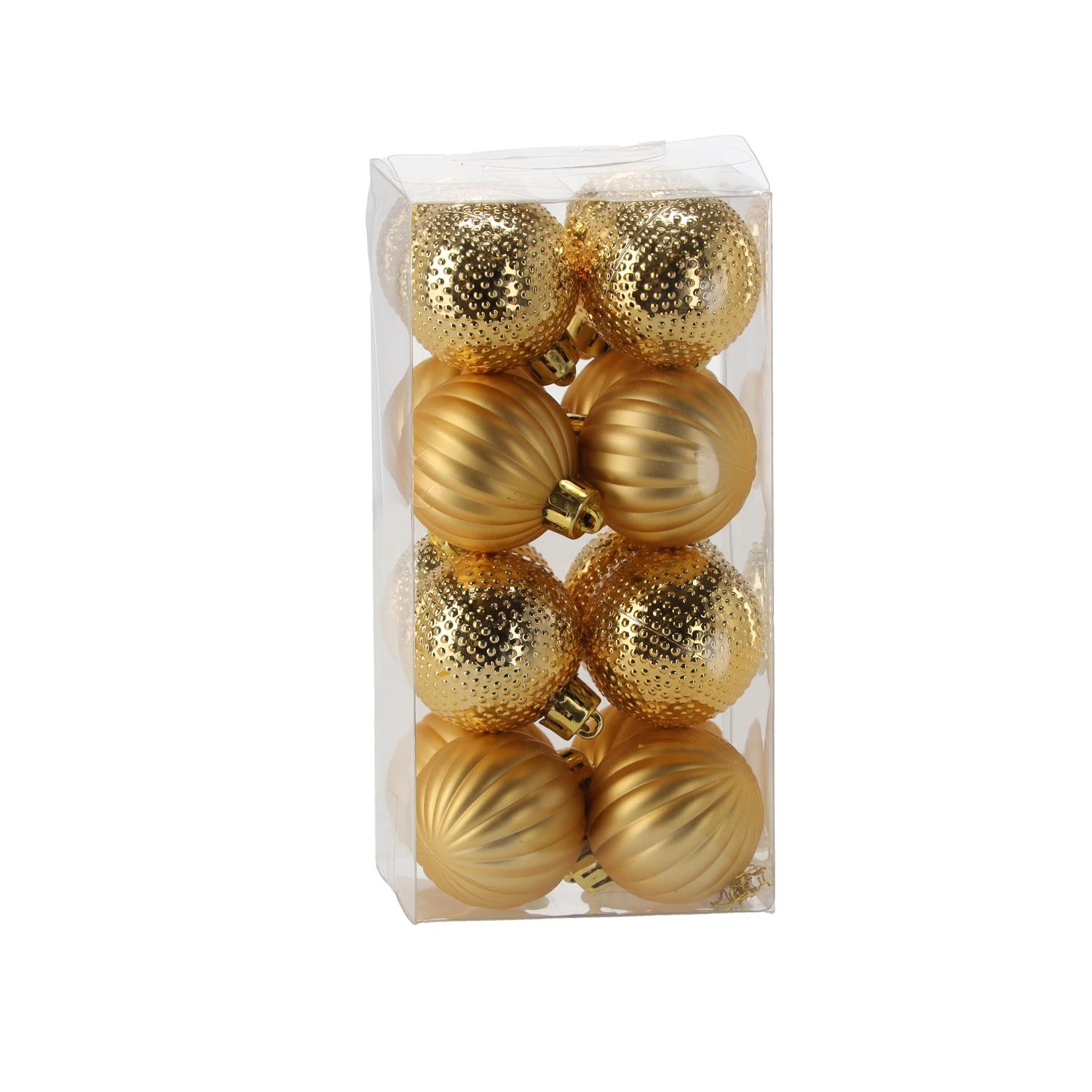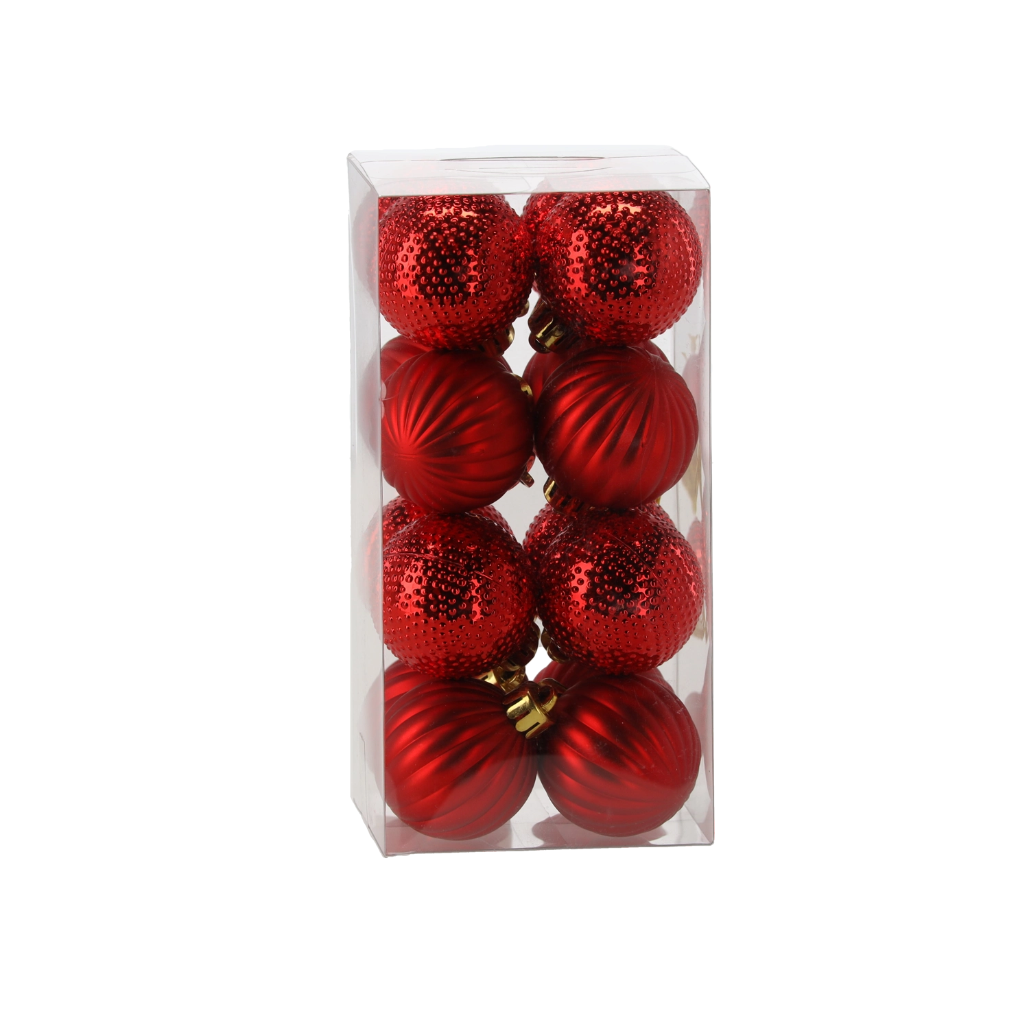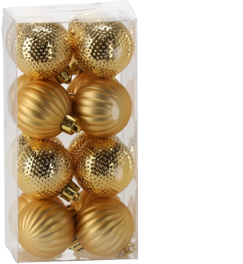 Vytvorte harmonicky zladenú vianočnú výzdobu vďaka sade 16 gúľ s priemerom 4 cm v tradičných farbách červenej, zlatej a striebornej. Kombinácia matných, lesklých a glitrových povrchov s ryhovanými a bodkovanými textúrami prináša efektnú hru svetla a štýlový, elegantný vzhľad.
