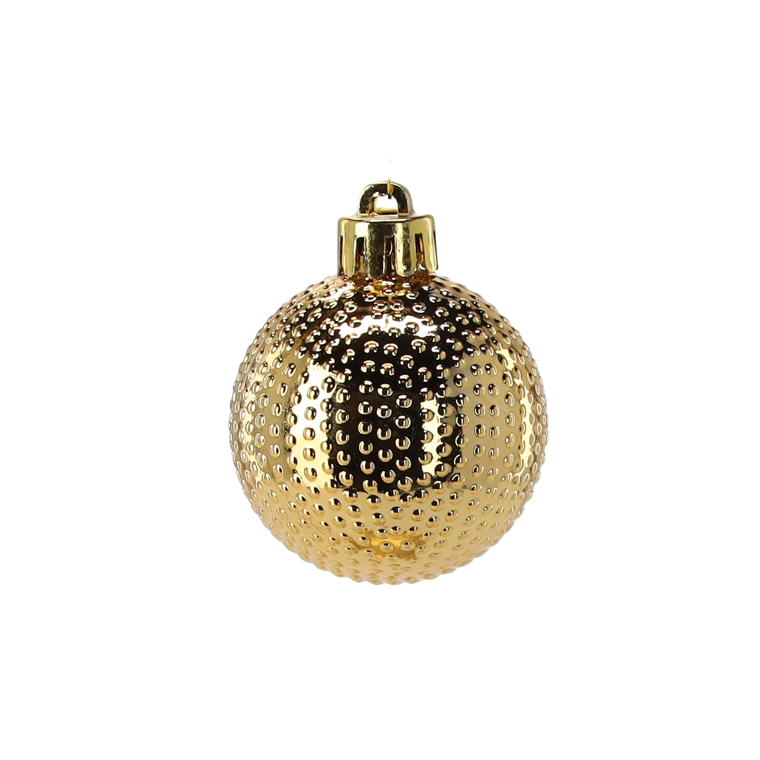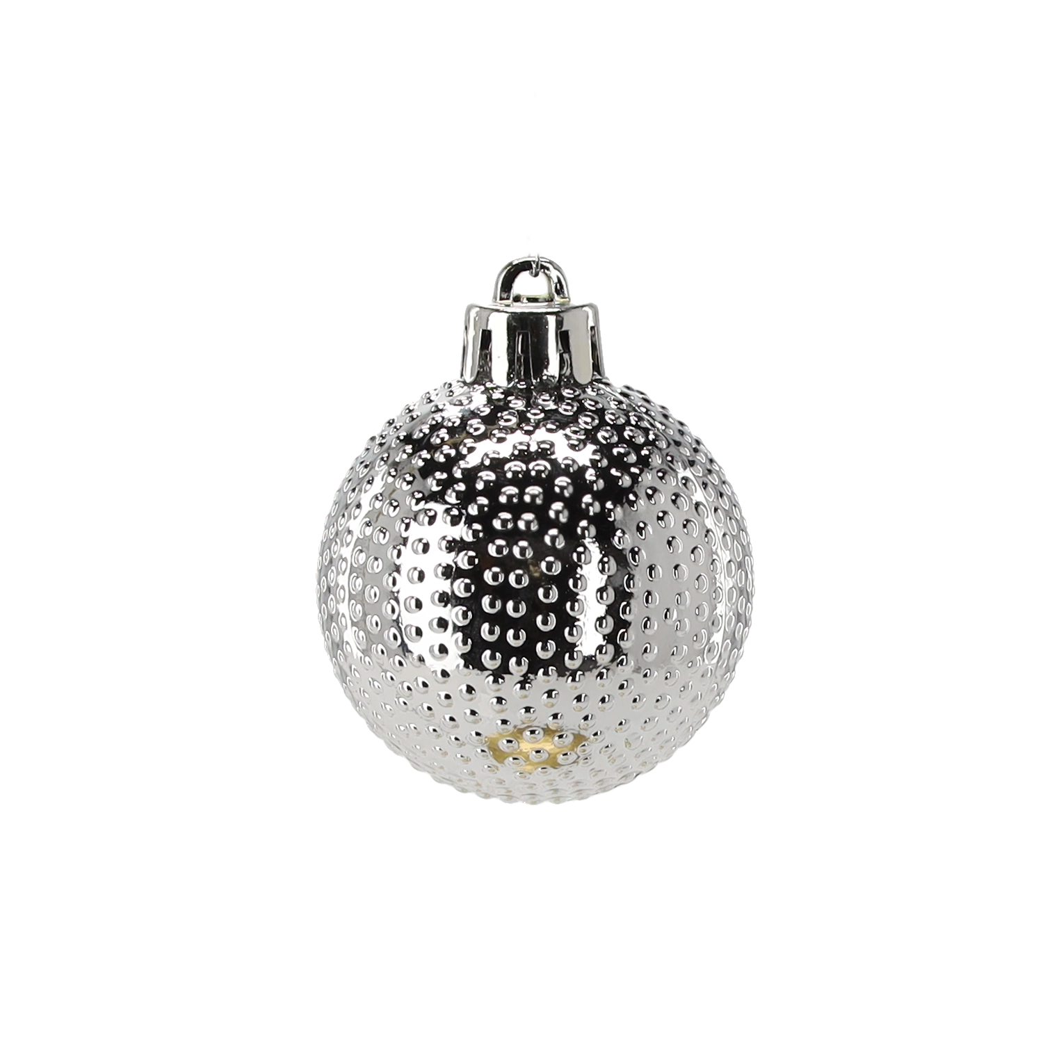 Guľe s jemným bodkovaným povrchom a vysokým leskom odrážajú svetlo a dodajú výzdobe iskru bez kompromisu v elegancii.