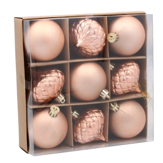 Táto vyvážená kolekcia prináša harmóniu farieb a textúr pre klasické aj moderné vianočné aranžmány. Ľahký materiál uľahčuje zavesenie na vetvy a vďaka pevnej konštrukcii zostávajú ozdoby krásne aj pri častej manipulácii.