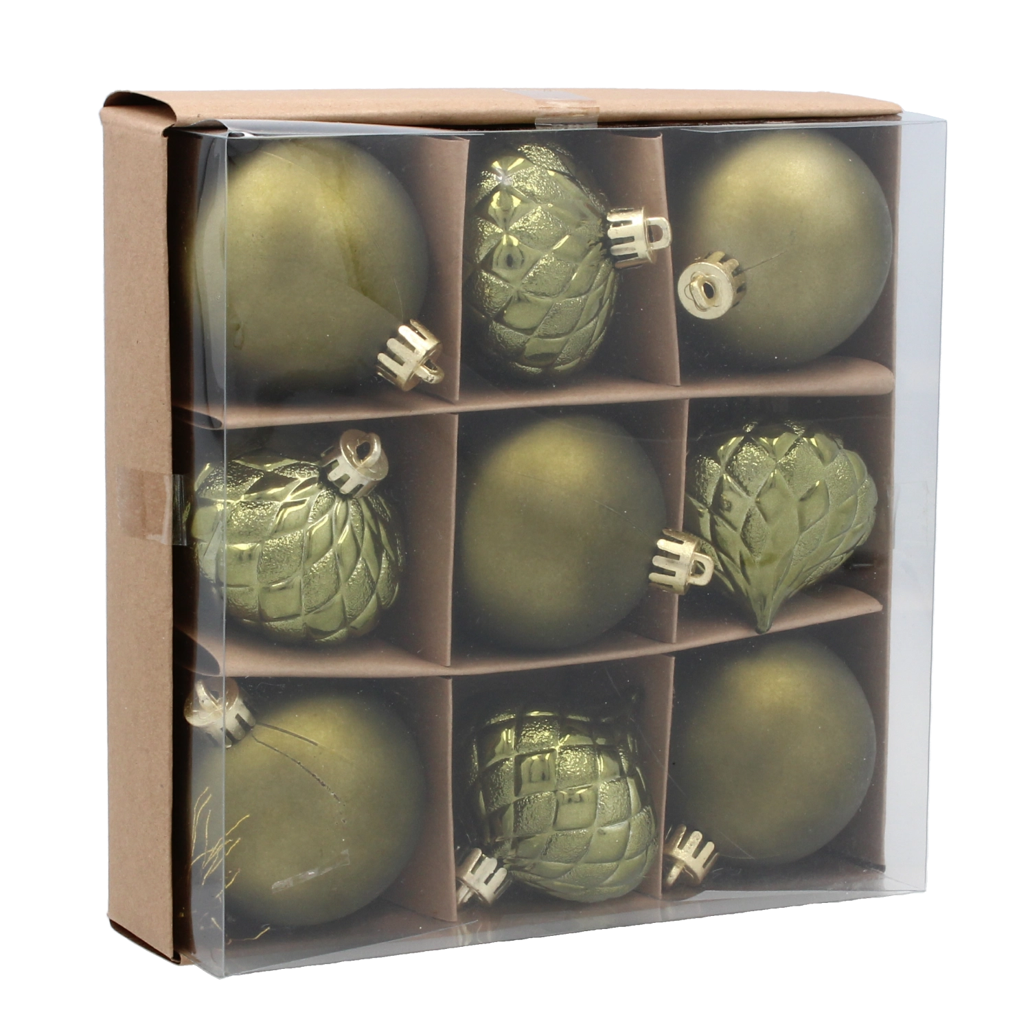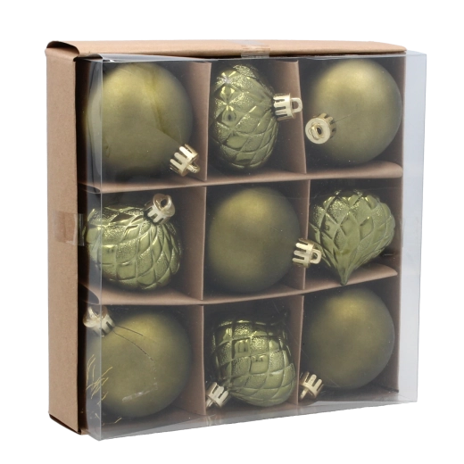 Doprajte stromčeku elegantný lesk so sadou 9 ozdôb s priemerom 6 cm v odtieňoch olivovej, medenej a grafitovej. Kombinácia moderných farieb a tradičných vzorov vytvára sofistikovaný vzhľad, zatiaľ čo odolný plast zaisťuje dlhú životnosť a bezpečné používanie.