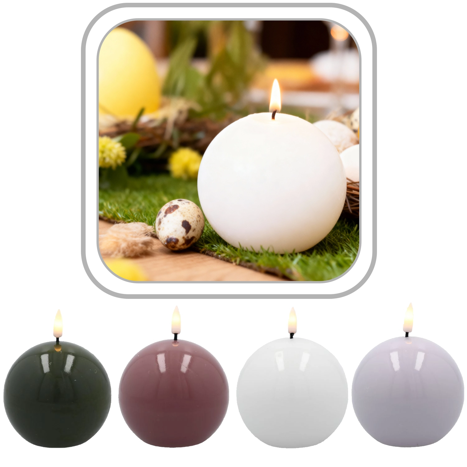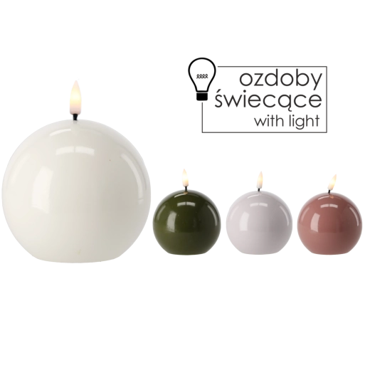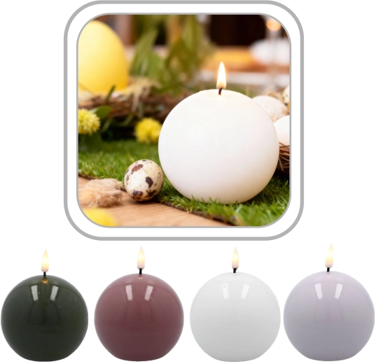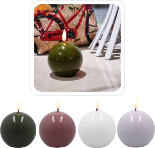 Elegantná LED sviečka v tvare gule s priemerom 8,5 cm prináša do interiéru teplé, atmosférické svetlo bez dymu a rizika požiaru. Vďaka pravému vosku a realistickému efektu plameňa pôsobí ako skutočná sviečka, no je bezpečná a bezúdržbová. Skvele sa hodí na romantické večery, oslavy aj ako štýlová dekorácia do obývačky či spálne.