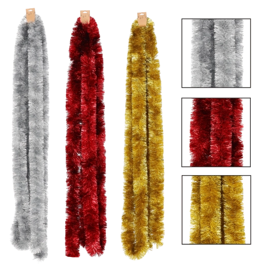 Univerzálny vianočný reťaz s dĺžkou 6 metrov je ideálny na zdobenie stromčeka, zábradlia, okien aj ďalších častí interiéru. Vďaka ľahkému plastovému prevedeniu sa s ním ľahko pracuje a nezťažuje vetvy, zatiaľ čo kombinácia červenej, zlatej a striebornej farby podčiarkne tradičný sviatočný štýl.