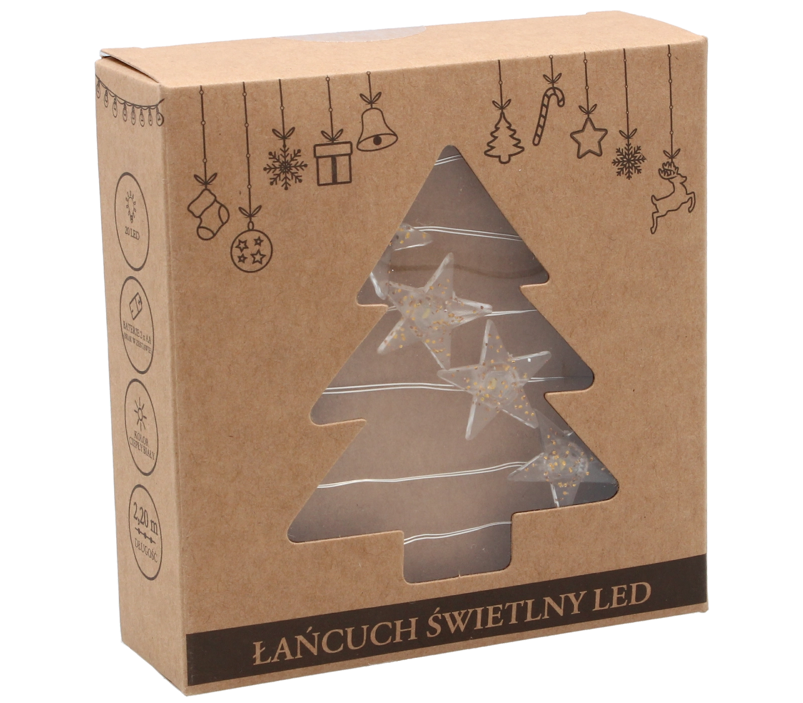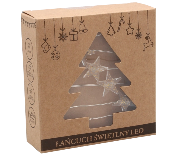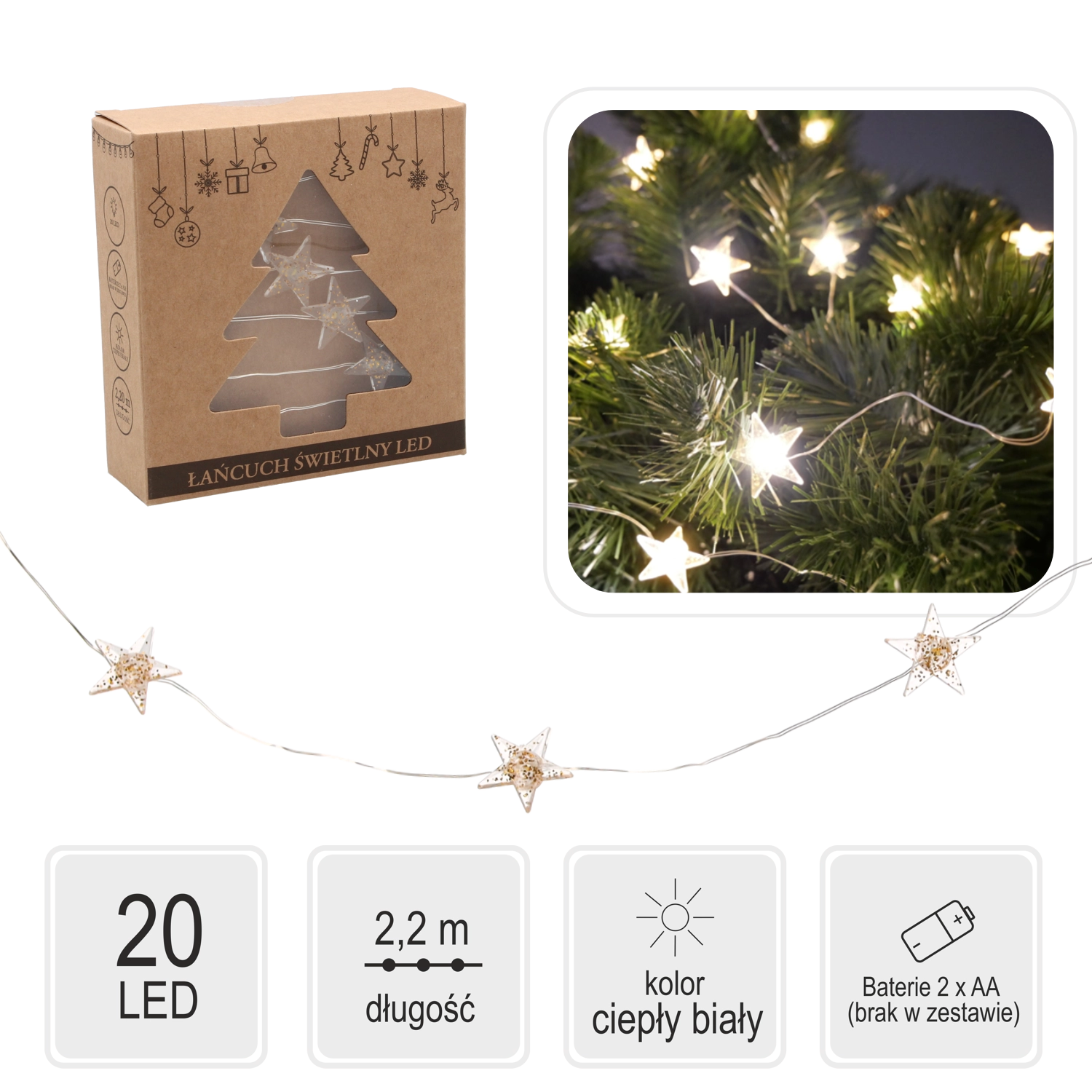Štýlová svetelná reťaz s motívom hviezdičiek rozžiari každý interiér. Teplé biele svetlo pôsobí príjemne a navodzuje slávnostnú náladu, či už ju použijete na vianočnú výzdobu, do dekorácií na komodu alebo ako jemný akcent na okno.