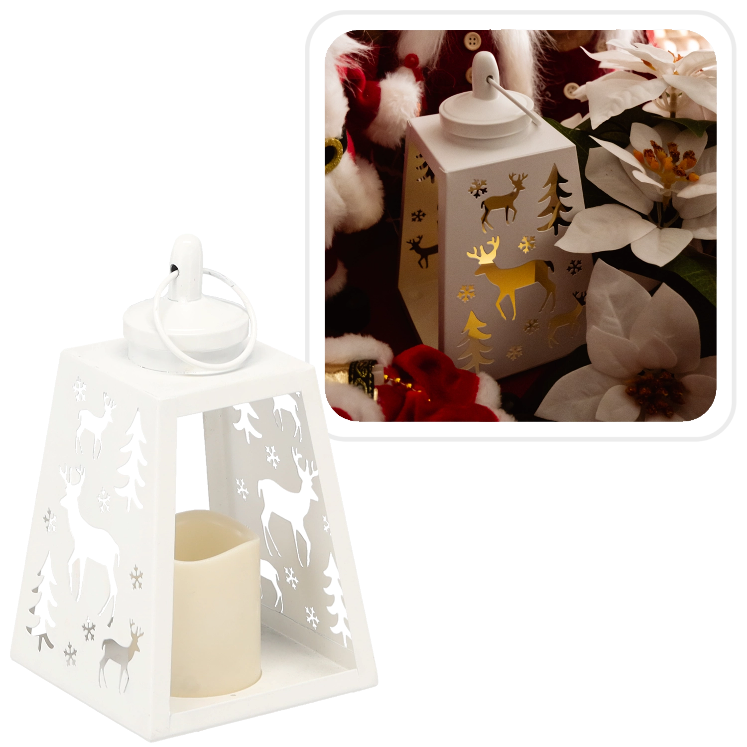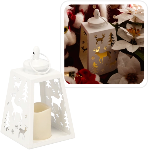Vytvorte si príjemnú atmosféru bez dymu a kvapkajúceho vosku. Tento biely kovový LED lampáš so štýlovým motívom soba je skvelou voľbou na zimné aj celoročné dekorovanie. Plastová sviečka vo vnútri vydáva jemné teplé biele svetlo, ktoré navodí pokoj a pohodu.
