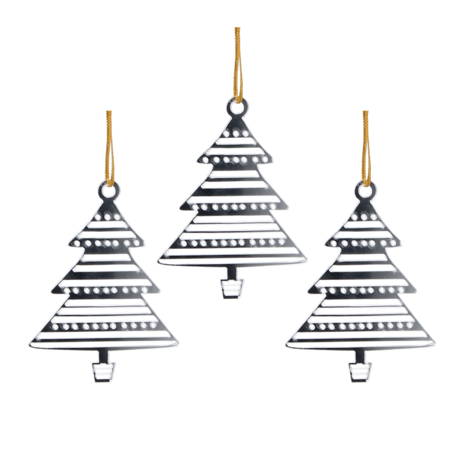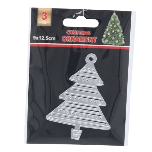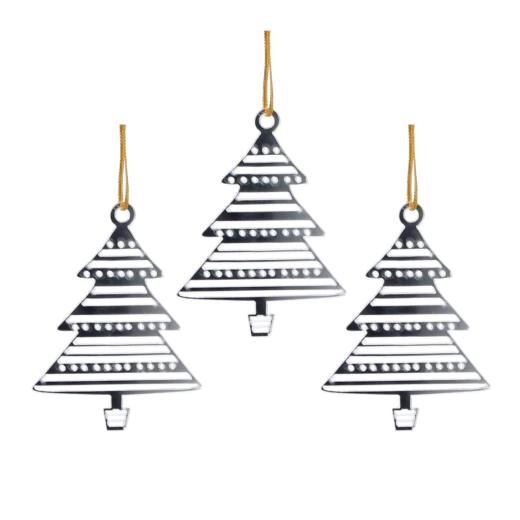 Táto sada troch plochých ozdôb v tvare vianočného stromčeka v elegantnej striebornej farbe sa skvele hodí na vianočný stromček, vence aj sviatočné aranžmány. Lesklý povrch s jemnými reliéfnymi detailmi a výrezmi pôsobí moderne a dodá dekoru iskru.